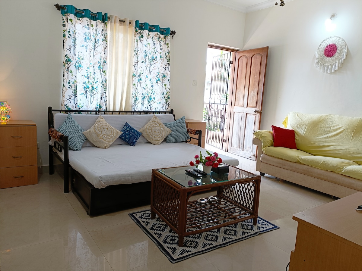 Spacious studio apt In candolim | 4 min from beach
