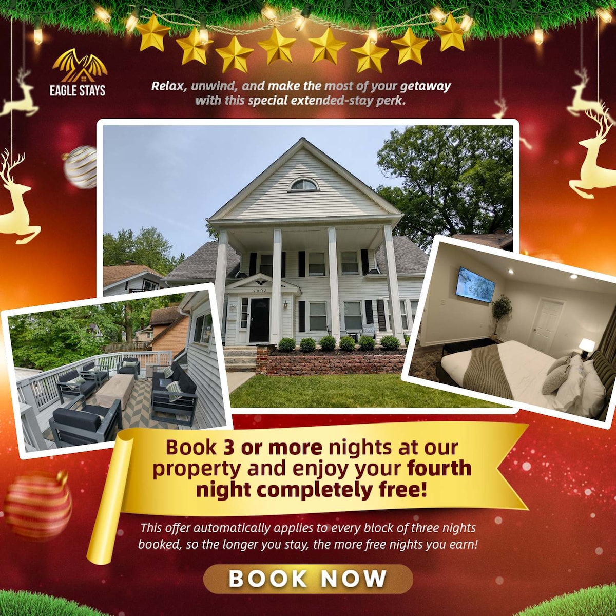 Experience total privacy in your own home, a 5-minute walk to restaurants, cafes, breweries, & the West Side Market! Enjoy a spacious backyard or hop downtown by car in 3 minutes. Features 4 bedrooms for up to 7 guests. Three bedrooms with separate entrances, with queen-sized beds and attached bathrooms. A fourth bedroom has a plush daybed and shares a bathroom with one of the other bedrooms. We provide fresh gourmet coffee beans, tea options, and Quaker Oats for a healthy breakfast.