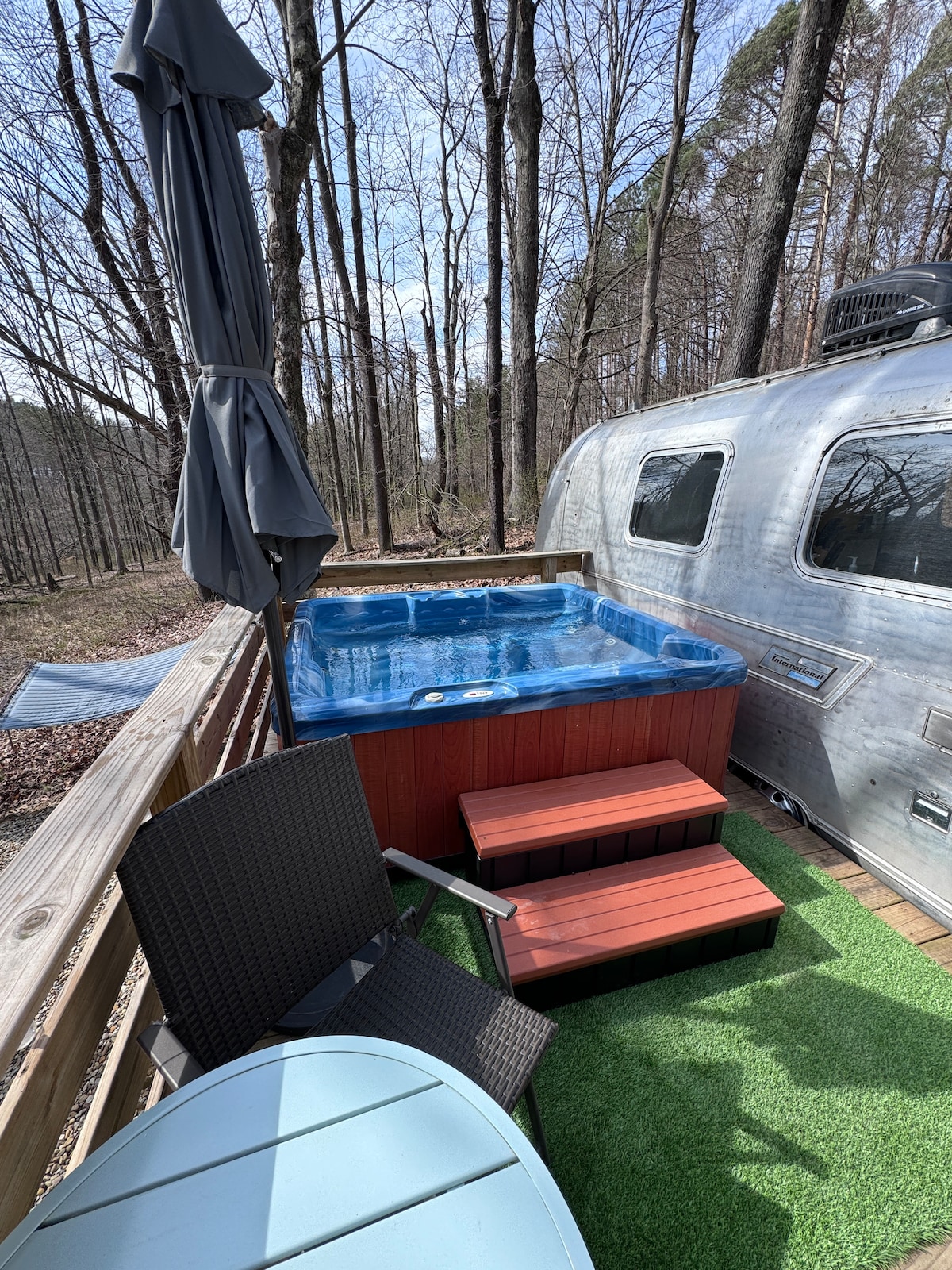 Luksuzni priklopnik Airstream, zasebna masažna kad in savna 2 od 6