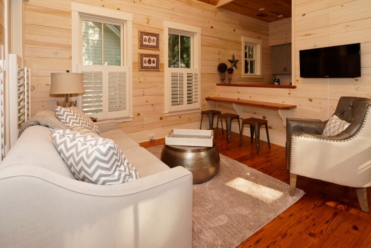 Elegantna koča v Blufftonu je edinstveno prenočišče z eno spalnico in eno kopalnico v osrčju starega mestnega jedra Blufftona. Edinstvena koča iz naravnega borovega lesa ima odprt bivalni prostor, ki ponuja popolnoma opremljeno kuhinjo. V prenočišču je zelo naraven vonj po boru, stene in tla pa so popolnoma pristni. Prenočišče je na peš razdalji do vseh trgovin in restavracij