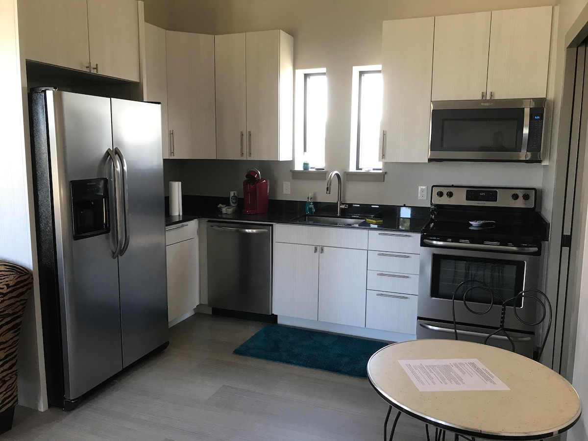 Dobrodošli v našem popolnoma prenovljenem enosobnem stanovanju z veliko zakonsko posteljo in prostorno kopalnico z dvojnim umivalnikom. Nahaja se v zgodovinskem okrožju OKC, le nekaj korakov stran od živahnega okrožja Plaza z več kot50 trgovinami, bari, kavo in restavracijami. Uživajte v hitrem dostopu do središča mesta (8 min), letališča (16 min), umetniškega okrožja Paseo (6 min) in središča Uptowna (5 min). Doživite sodobno udobje in priročnost v tem elegantnem mestnem prenočišču. Zračni filtri HEPA in pametni televizorji, puhaste blazine, kavni bar/mini-hladilnik in mikrovalovna pečica!