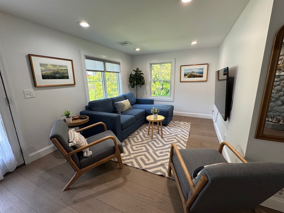 Razkošno stanovanje 1Br + 1bth je popoln oddih. - 650 kvadratnih čevljev, na novo obnovljeno - 15 minut od plaže Old Silver Beach, South Cape Beach in plaže Falmouth Heights - Koraki od 1700 hektarjev sprehajalnih poti (divjih živali žerjavih) - 7 minut do Mashpee Commons (trgovine in restavracije) - 15 minut do glavne ulice Falmouth - 13 minut do trajekta za vinograd Marthas - 85-palčni pametni televizor - 5 minut do poti Shining Sea Bike - Aparat za kavo/espresso - 2 minuti od igrišča za golf Paul Harney