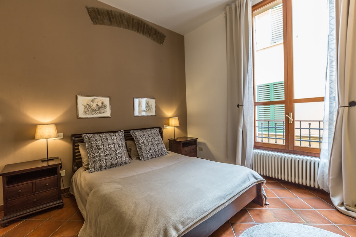 Stanovanje v zgodovinskem središču 50 kvadratnih metrov, popolnoma prenovljeno, svetlo, dobro opremljeno z vsem, kar potrebujete za prijetno bivanje. Dve spalnici z zakonsko posteljo, ena s posteljo 160x200, druga s francosko posteljo 140x200, zasebno kopalnico in dnevnim prostorom z opremljeno kuhinjsko nišo. Možnost brezplačne shrambe za prtljago, brezplačna garaža ob rezervaciji od prihoda do odhoda z dostopom do prometno omejene cone ZTL.