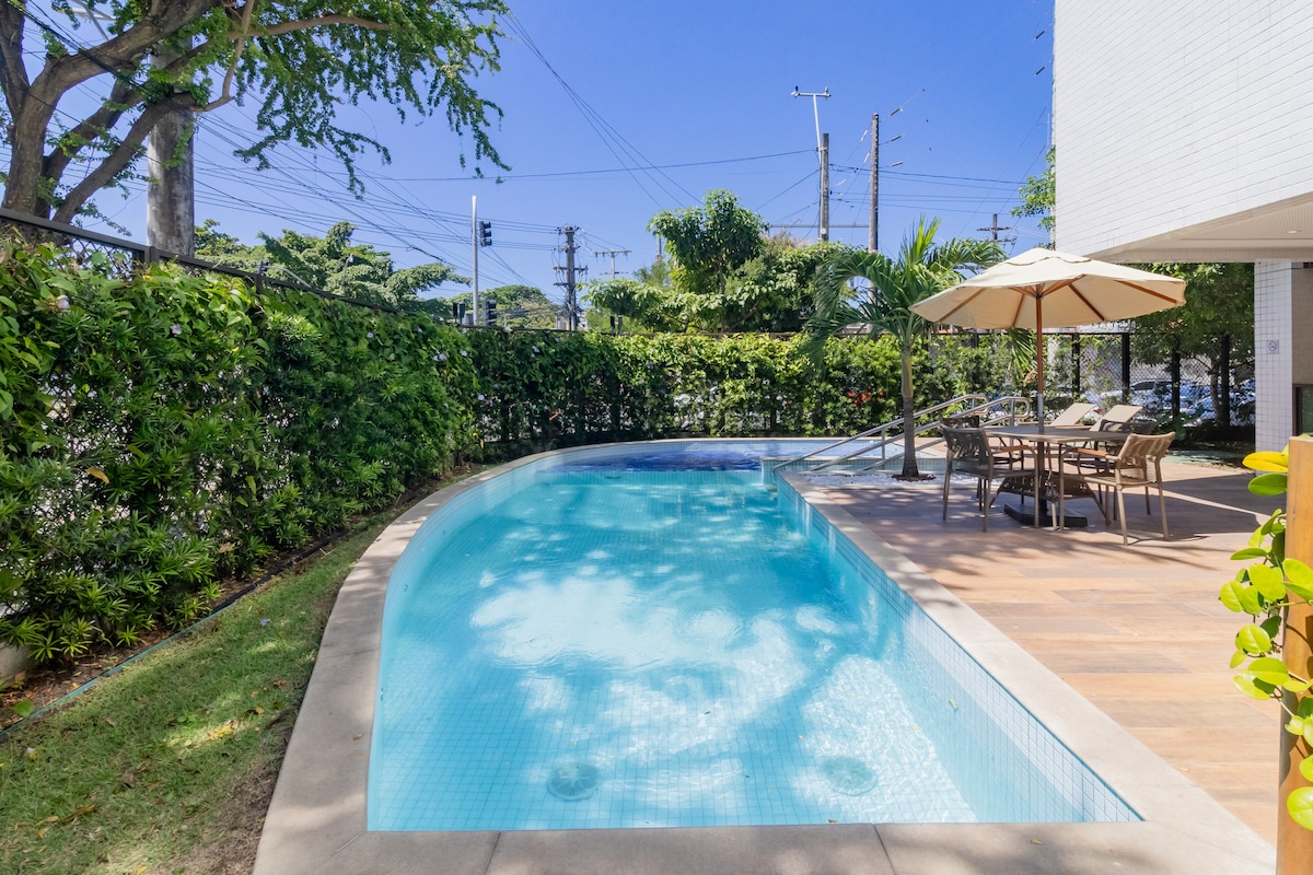 Estúdio c/ piscina aquecida | praia 8min | garagem