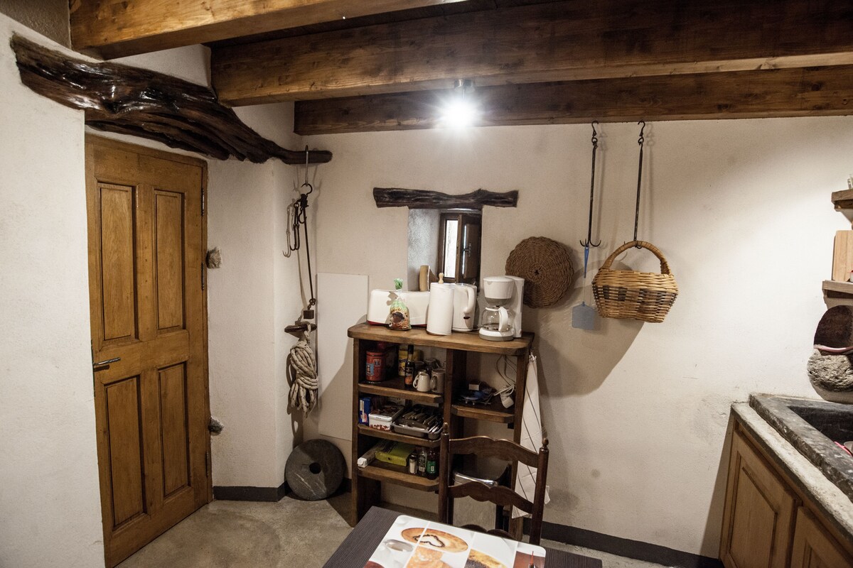 Maisonnette construite sur un lavoir, comprenant une pièce principale avec un lit en 140, coin cuisine équipé (micro-ondes, plaque de cuisson, réfrigérateur, vaisselle, cafetière filtre, bouilloire...), salle de bain avec baignoire d'angle, soupente avec deux couchages. Equipement pour bébé (Lit parapluie, chaise haute, réducteur toilettes ) disponible gratuitement sur demande.