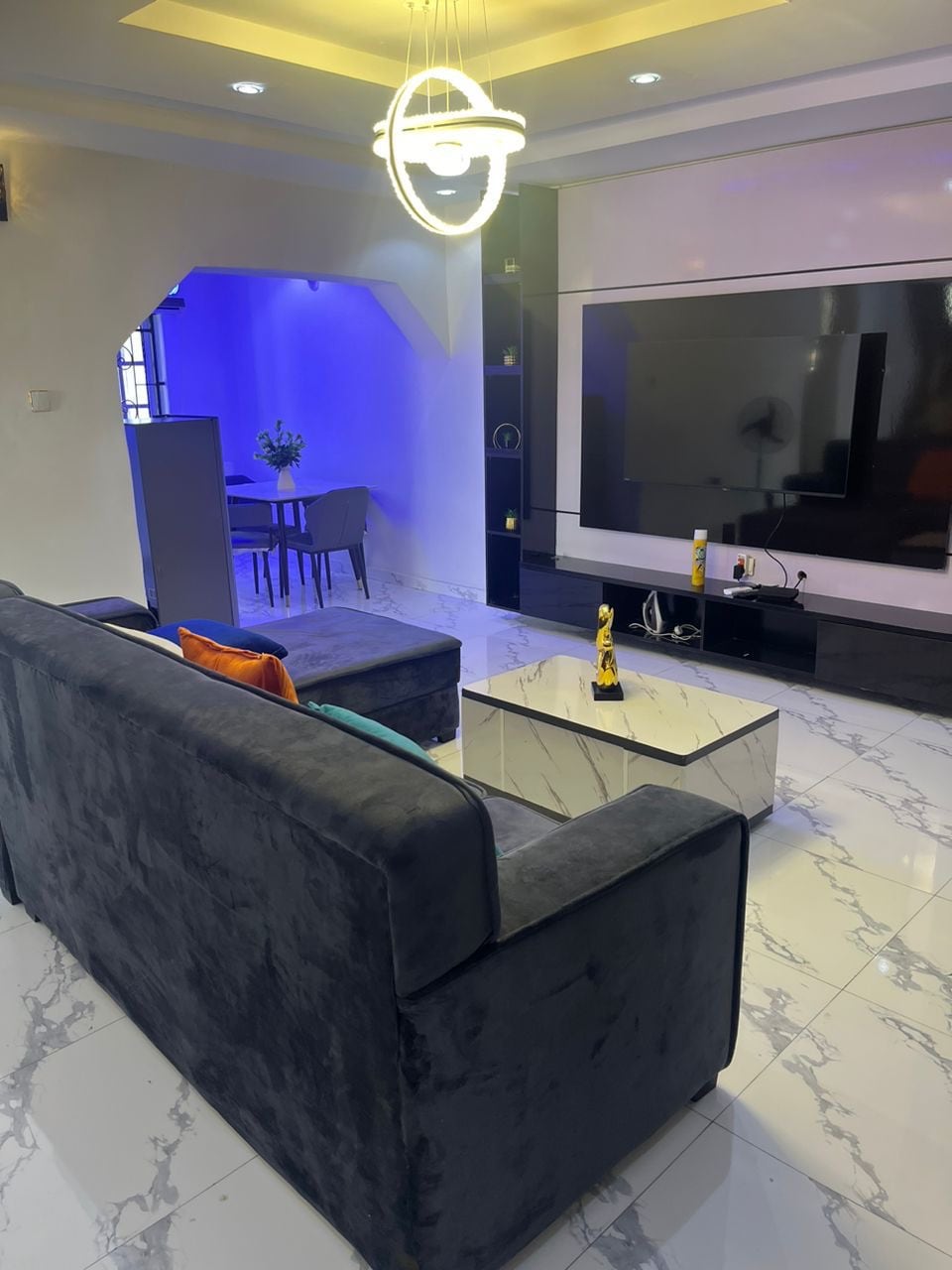 Relax with style in this spacious 1-bedroom with 2 Living room penthouse apartment (for 5 people) with 24/7 electricity and unlimited fast WiFi. Located in Ire Akari estate, Oluyole extension, Ibadan in a gated close. Looking for a premium, secure, and comfortable stay in Ibadan? My spacious 1-bedroom penthouse with 2 living rooms located in the serene and secured Ire Akari Estate. Perfect for short stays, business trips, staycations, or group getaways — comfortably accommodating up to 5guests