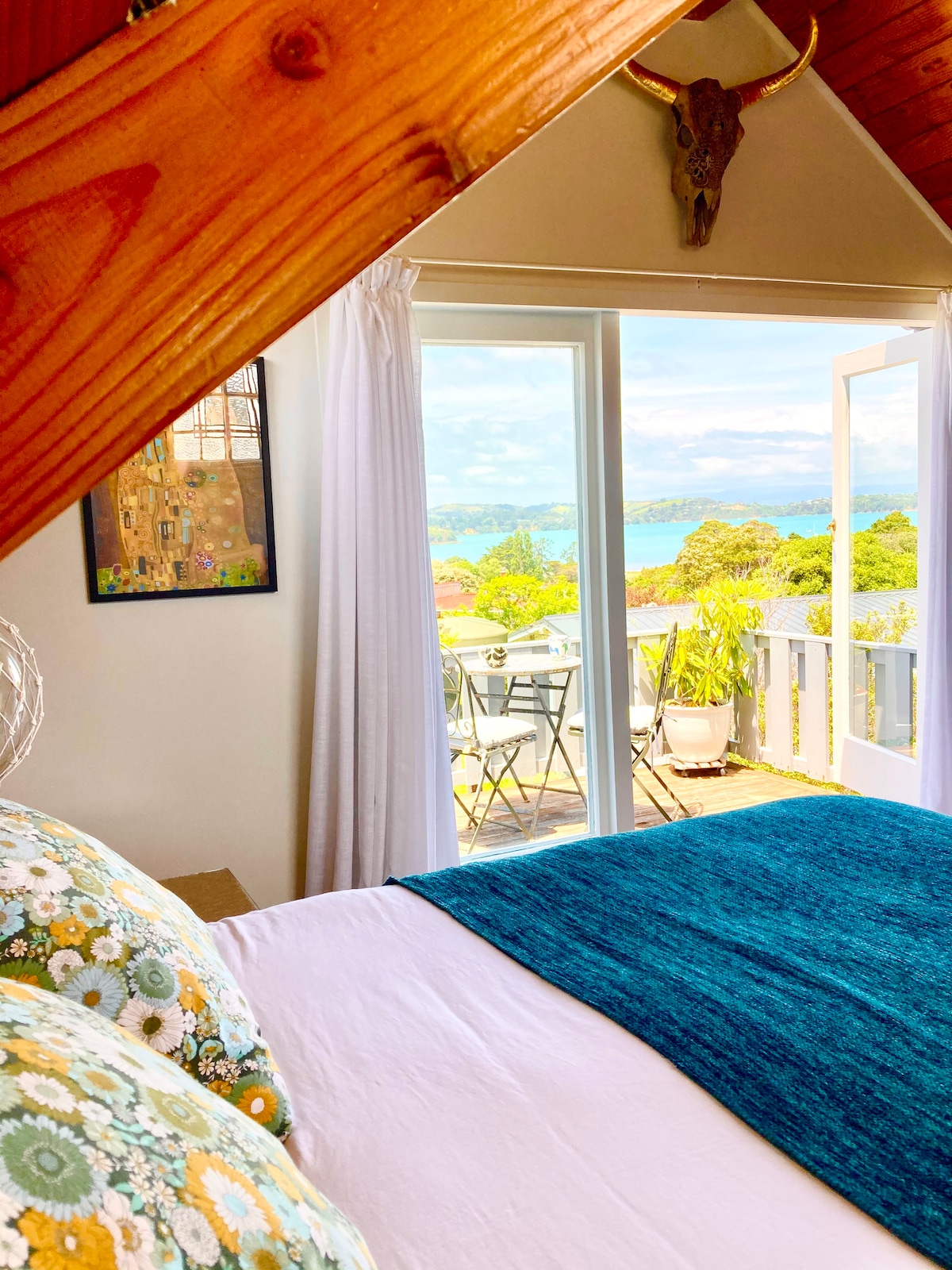 A gorgeously stylish & newly renovated studio where proximity to two beaches is key! Walk to the bottom of the drive & you're literally seconds away from the stunning Enclosure Bay. Turn right & you're an easy 3-minute stroll to an equally picturesque swimming beach, Sandy Bay. The studio is located a 7-minute drive to Oneroa Village, 10 minutes to the ferry & being a central location on the island, award-winning vineyards are a scenic drive in any direction. Location + Style + Breakfast!