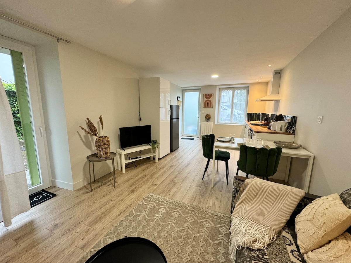 Profitez d'un logement neuf, élégant et idéalement situé. Ce T2 rénové se compose d'une chambre, un salon/salle à manger, cuisine et salle d'eau avec WC. Situé à 15 min à pieds de la cathédrale, 5 min du stade vous pourrez profiter de toute les commodités. Travailleur ou Vacancier, vous disposez d'une entrée privée ainsi qu'un parking gratuit. Sur demande : - Possibilité d'abriter vos 2 roues dans un garage fermé. - Mise en place et préparation d'un second couchage (si 2 couchages distincts).