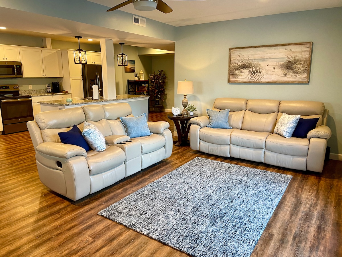 Pridite in se počutite kot doma v tej udobni in tihi enoti, ki se nahaja ob mirnem ribniku, kjer boste vsak večer uživali v čudovitih sončnih zahodih! S prostornim odprtim dnevnim prostorom se lahko sprostite in gledate svoje najljubše filme ali oddaje na 80-palčnem pametnem televizorju. Kuhinja je popolnoma opremljena z vsem, kar potrebujete za pripravo obroka, ali pa boste morda uživali v preizkušanju bližnjih restavracij. Od neokrnjenih plaž otoka Topsail, na pol poti med Wilmingtonom in Jacksonvilleom, nas loči le kratka vožnja.