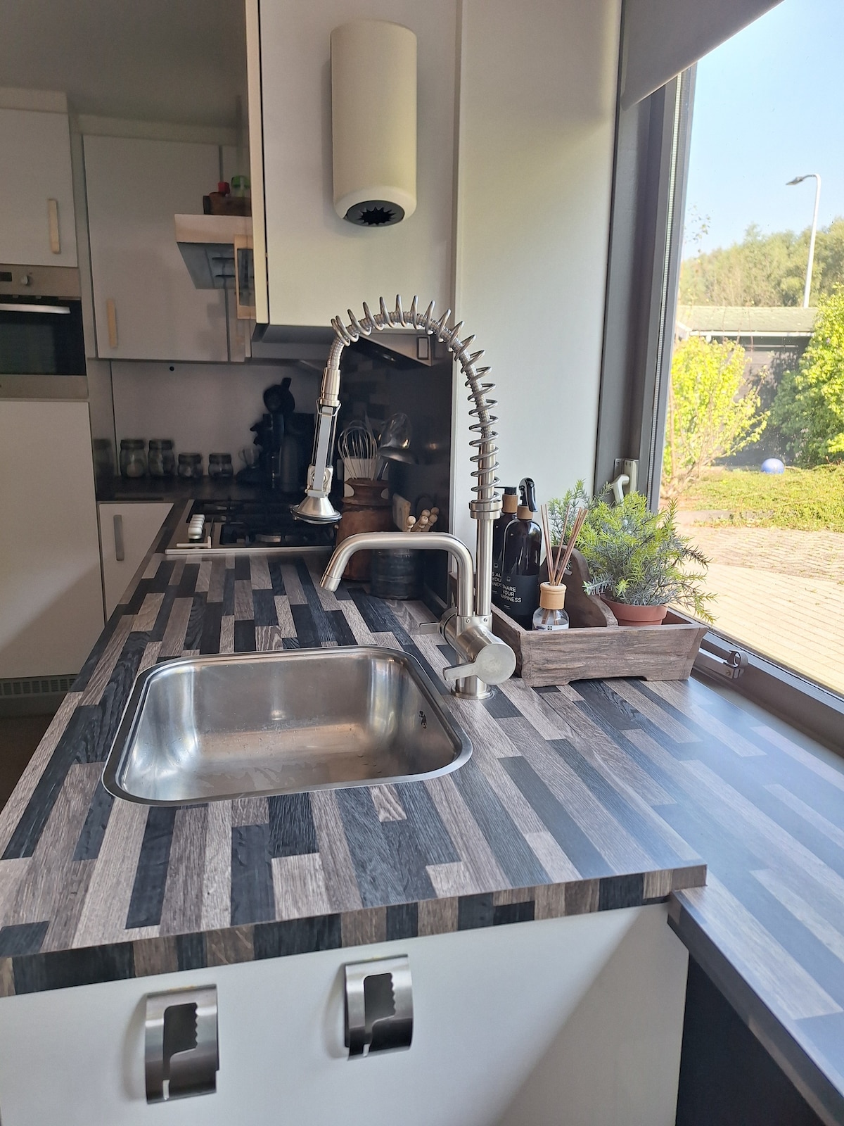 Dobrodošli! Ta prostorna hiša z zasebnim vhodom se nahaja za našo hišo (na drugi strani našega bogatega vrta). ♡ Dnevna soba s plinskim kaminom, kino, kuhinja s hladilnikom/kombinirano pečico/grelnikom vode/kuhalno ploščo, kopalnica z dežno prho, podstrešje z zakonsko posteljo ♡ Prostorna terasa s senčnikom, vrtnim pohištvom in žarom ♡ Savna in masažna kad z doplačilom (45 €) ♡ 15 minut hoje do tržnice Haagse Markt (restavracije in trgovine) 10 minut vožnje z avtomobilom/15 minut kolesarjenja do središča Brede.