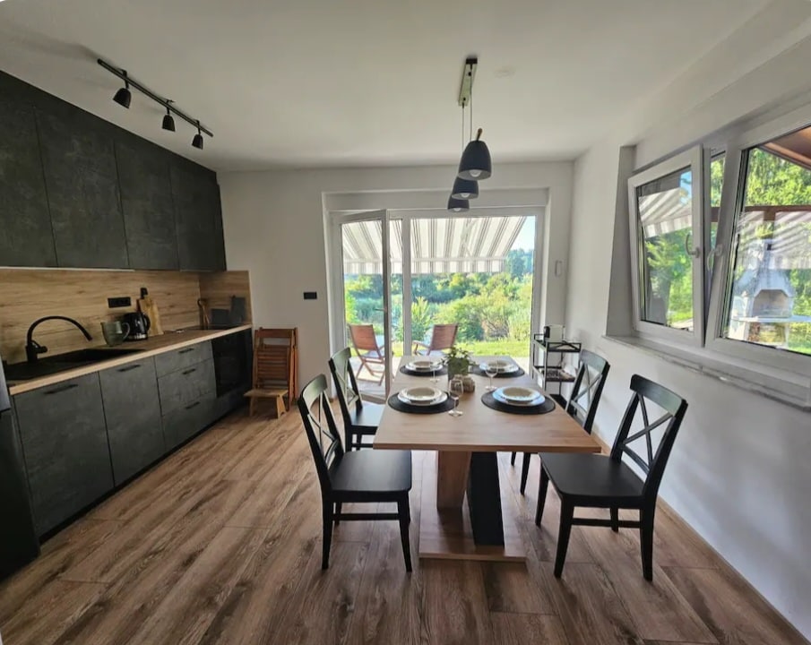 Antonio apartment is located in Cerovac Vukmanićki, around 10 kilometers from the city of Karlovac and 40 kilometers from Slunj. The apartment has free Wi-Fi, accommodation with air conditioning, terrace and parking lot. The accommodation consists of two bedrooms, living room, kitchen with appliances, dining room, one bathroom with shower, and an outdoor view. Within the apt grounds, guests can enjoy bike rides and hiking.For children from 5-12 years 15€.Plitvice lakes are 78km away