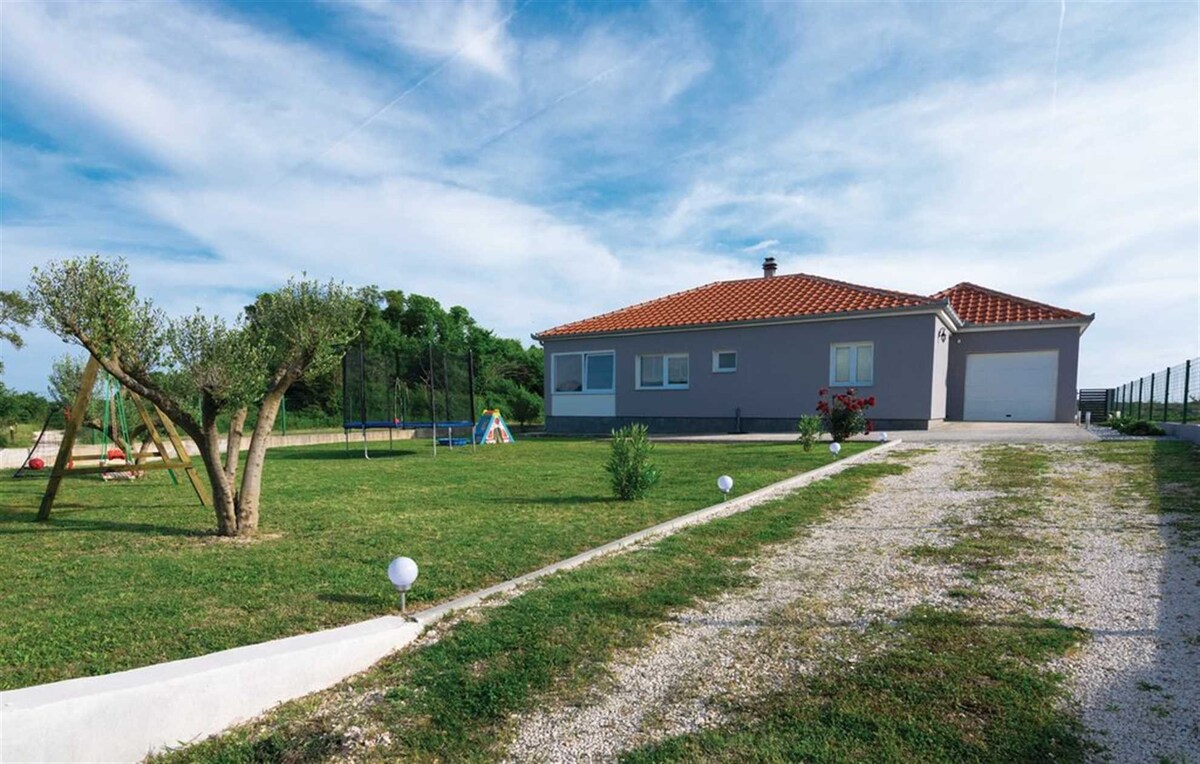 Ta popolnoma nova vila se nahaja na mirni lokaciji in je obdana s čudovito naravo. Vila je sestavljena iz 4 spalnic, dnevne sobe z jedilnico, popolnoma opremljene kuhinje, treh kopalnic, terase , parkirnega mesta in ogrevanega bazena. Vse sobe so klimatizirane, ena soba pa ima zasebno kopalnico. Hiša se nahaja 10 minut vožnje od najbolj priljubljene peščene plaže in 10 minut od mest Zadar in Nin. V bližini nastanitve se nahajajo tudi restavracije in trgovine.