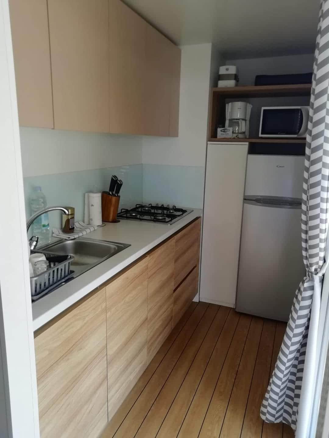 Luxury Mobile Home Jana is completely new and fully equipped. It's located in Camp Soline**** in Biograd na moru, Croatia - ca. 30 km from Zadar. It's for 6+2 people, including 3 bedrooms and 2 bathrooms. Ca 40 m2 plus 30 m2 terrasse. The beach, several sport activities, restaurants, bakery, shops etc. are nearby. Air condition, free Wifi, Smart TV, parking, dish washer, grill, bed linen, towels etc. available Prices from 90 € until 250 € per night, depends on booking period.