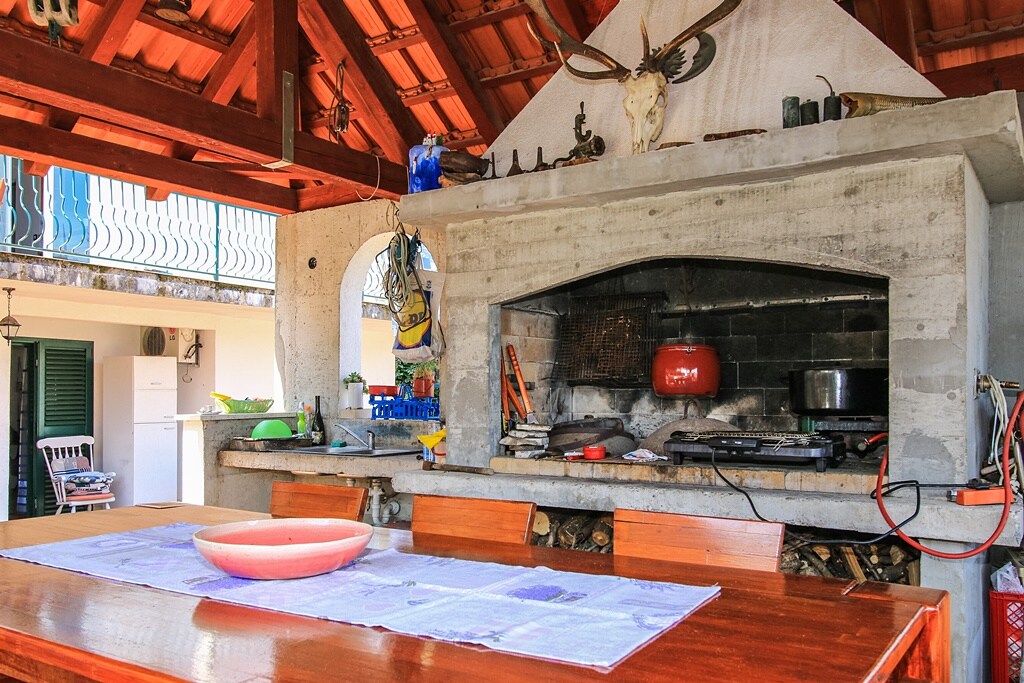 Ta dupleks hiša se nahaja približno 400 m od najbližje prodnate plaže in majhnega pristanišča. Ima kamin in pokrito dvorišče. Najbližji supermarket je v Trpnju (14 km), najboljši kraji za obisk pa sta mesto Orebić in Viganj, kjer lahko uživate v vetru in deskanju s zmajem. Kolesarske poti so na voljo po čudoviti pokrajini, najem koles pa je vključen v ceno. Lastnik brezplačno organizira kratko ribolovno potovanje (2-3 ure).