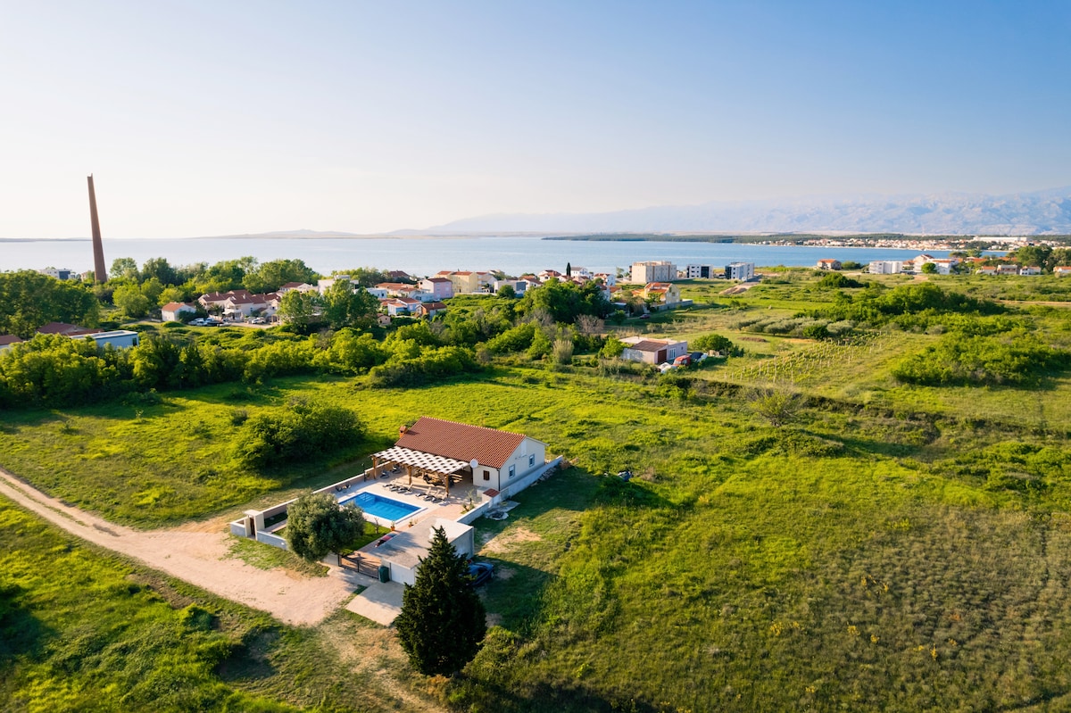 Sprostite se z družino v tej udobni nastanitvi v mirnem okolju z ogrevanim bazenom, žarom Kamado, veliko teraso z bazenom, teraso ob vhodu v hišo, velikim dvoriščem in 2 parkirnima mestoma na dvorišču. Razdalja Nin3,5 km, Zadar 17 km, letališče Zadar 27 km, Narodni park Paklenica 45 km, Narodni park Krka 60 km, Narodni park Kornati 80 km, Plitviška jezera 120 km. Okolica lahko raziščete tako, da se sprehodite ali kolesarite po naravi. V bližini hiše je javno igrišče za mini nogomet z umetno travo.