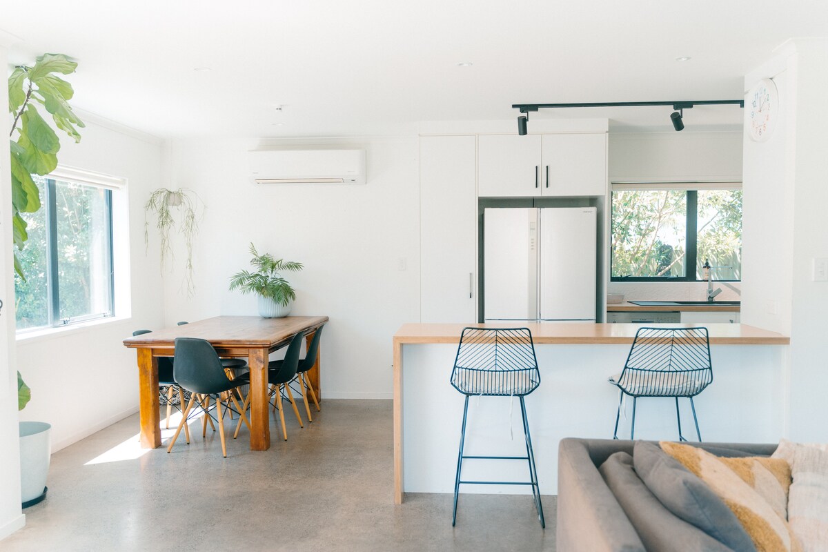 Sprostite se in sprostite v našem mirnem prenočišču na osupljivi plaži Ōhope. Ta oddih z dvema spalnicama je kot nalašč za družine, pare ali prijatelje, ki se želijo sprostiti in raziskati, kaj ponuja to območje. Uživajte v popolnoma opremljeni sodobni kuhinji in bivanju odprtega tipa, ki se brez težav izliva na sončno teraso. Edinstvena značilnost je dostop do oceana neposredno čez cesto z enega konca namestitve in dostop do pristanišča z drugega konca.