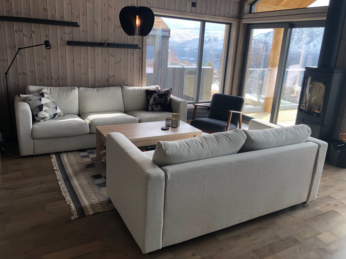 Moderne hytte med flott utsikt