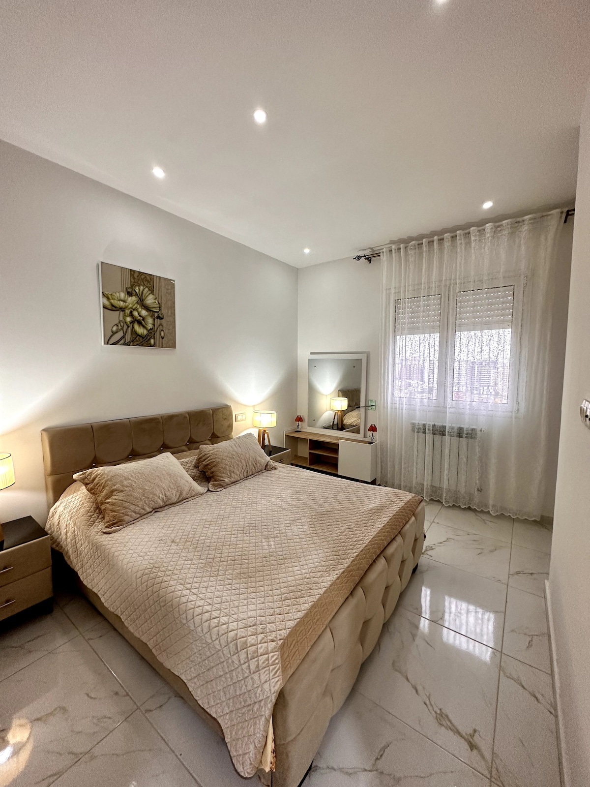Čudovito stanovanje s panoramskim pogledom na morje, ki je kot nalašč za sproščujoče bivanje, ki združuje udobje in eleganco. To prostorno in svetlo stanovanje je sestavljeno iz: 2 veliki udobni spalnici 1 zakonska postelja (King) 1 zakonska postelja (180 cm) Velika dnevna soba s 180-stopinjskim pogledom na morje, preplavljena z naravno svetlobo Popolnoma opremljena sodobna ameriška kuhinja Kopalnica s prho Varovano zasebno parkirišče v kleti, varnostnik non stop, nadzorna kamera, nadzorovan dostop z daljinskim upravljalnikom