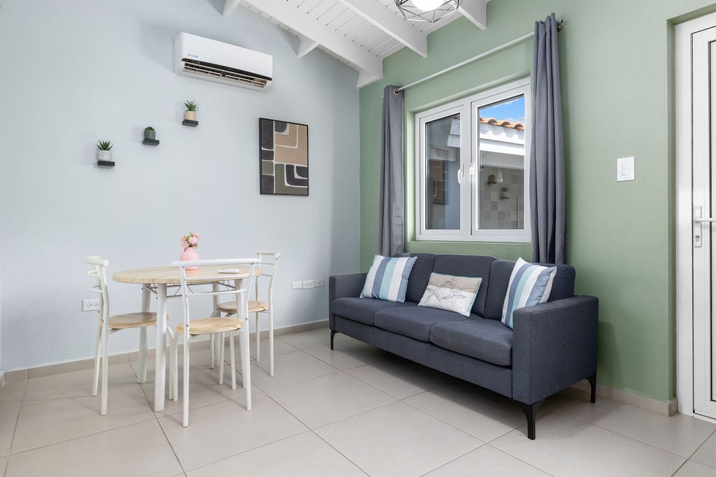 Popolnoma nov studio apto. se nahaja v bližini plaže Eagle Beach (najboljša 20. plaža na svetu), ki je oddaljena 15 minut hoje. Odličen oddih za pare. Velik supermarket in nakupovalno središče sta oddaljena 10 minut hoje. Garsonjera ima evropsko (večjo od ameriške) zakonske postelje, polno omaro, 2 stola, mizo, televizijo 44 palcev 4k visoke ločljivosti z 200 kanali plus in NetFlix, posteljnino in brisače, milo, sušilnik za lase in brezplačen šampon. Zunanji žar je prav tako prednost.