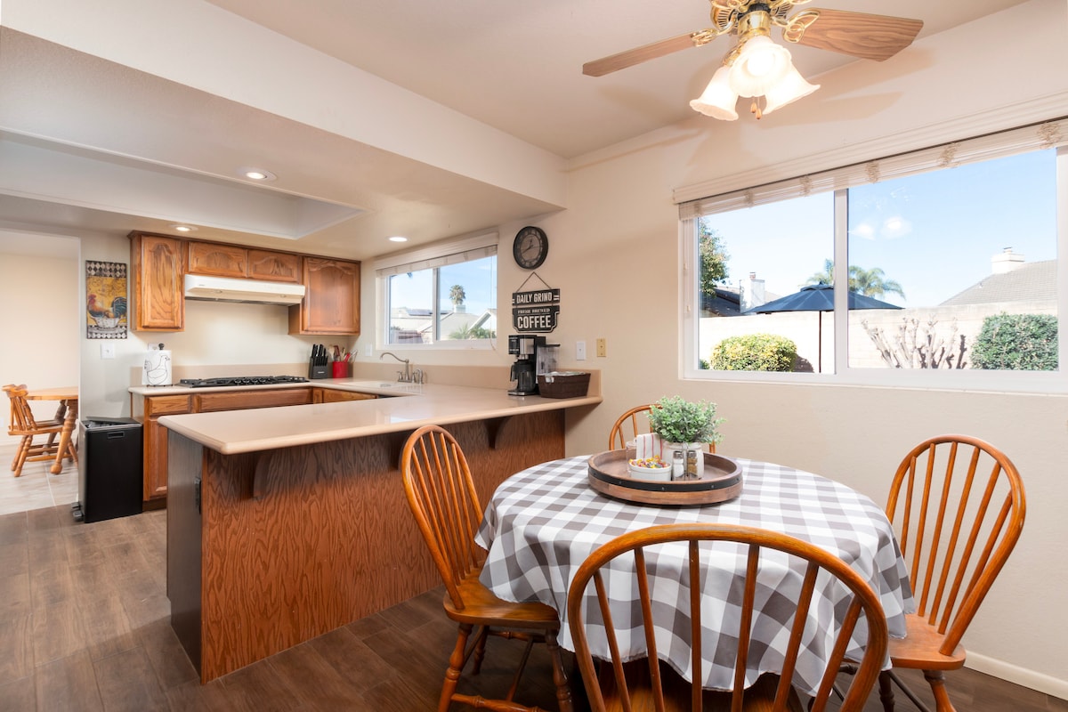 Pogodba: za rezervacijo je treba podpisati pogodbo o najemu. Preverite e-pošto, da dokončate rezervacijo. Prostor: vaše zasebno zatočišče na območju Central Coast v prestižni soseski. V bližini stez Orcutt Hill, vinske kleti Presqu’ile Winery in svetovno znane restavracije Santa Maria BBQ. Lokacija: kratka vožnja do krajev Pismo (SLO), Solvang, Santa Barbara ali Lompoc (VSFB). Uživajte v naši čudoviti obali, neokrnjenih plažah in skoraj popolnem vremenu. Idealno za sproščujoč oddih.