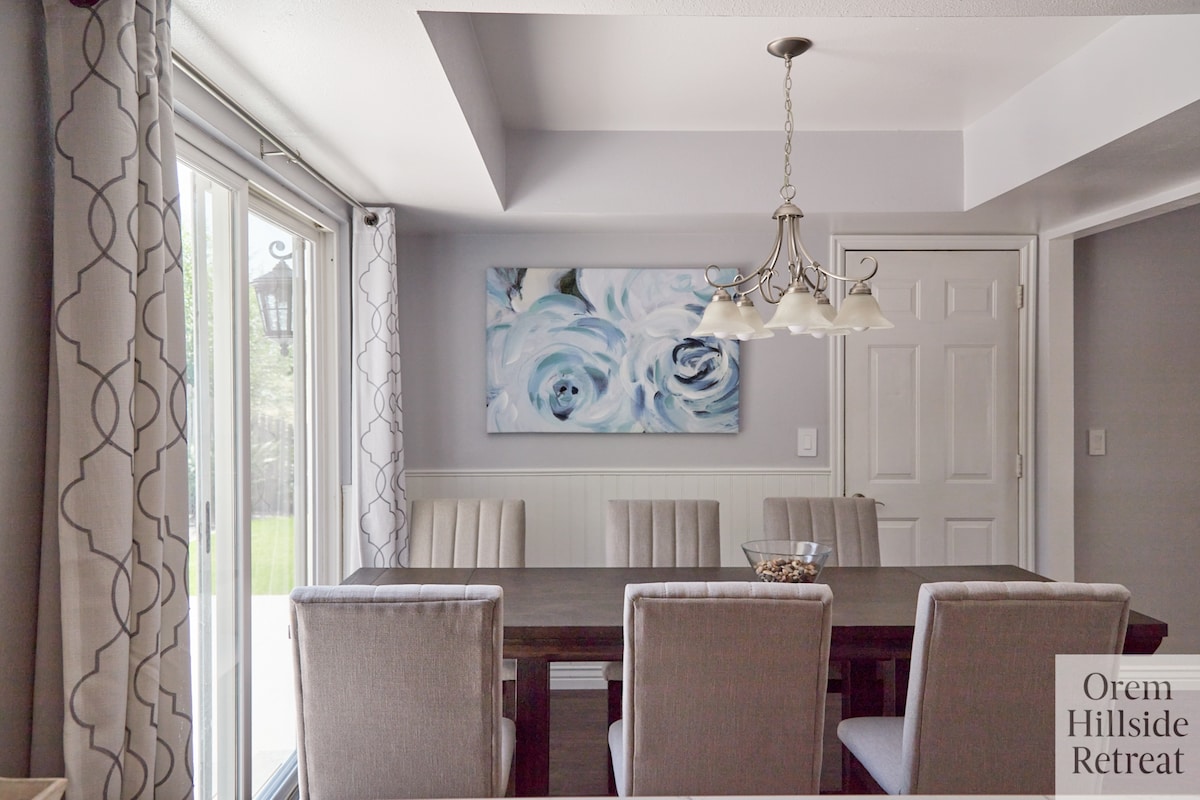 Doživite okrožje Utah v slogu s to na novo prenovljeno dvojno hišo v Oremu, ki se nahaja na priročni lokaciji v bližini ulice I-15. Blizu Prova, BYU, UVU in najboljših dejavnosti, kot so pohodništvo, golf in smučanje. Sprostite se na zasebnem vrtu, ki ga je zasnoval Ginger Belnap v Uti. Prepustite se kraljevski glavni postelji in neskončni vroči vodi za popolno bivanje. Idealno za družine, poročne zabave, teden izobraževanja, podelitve diplom, kongrese, smučarske izlete in še več.