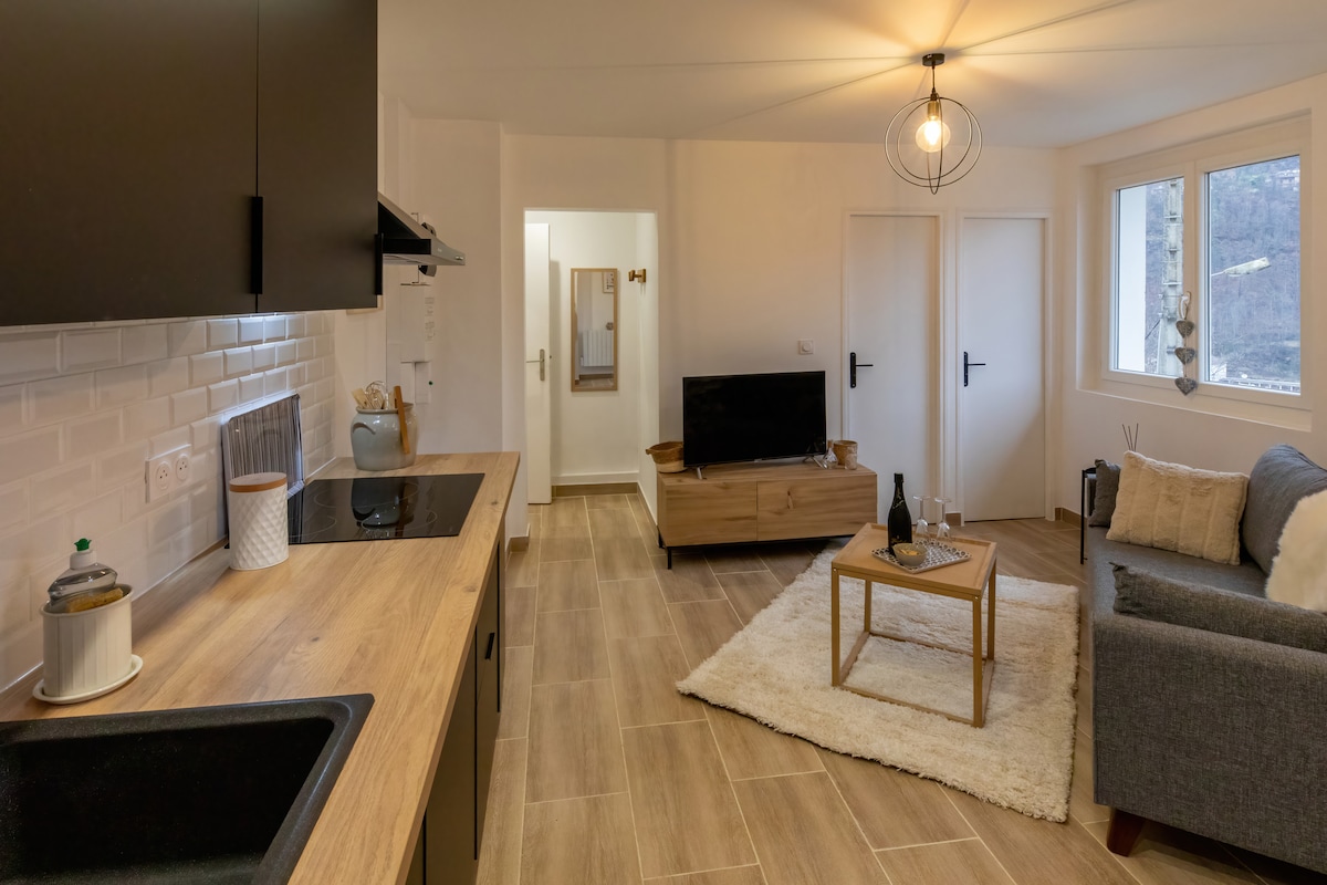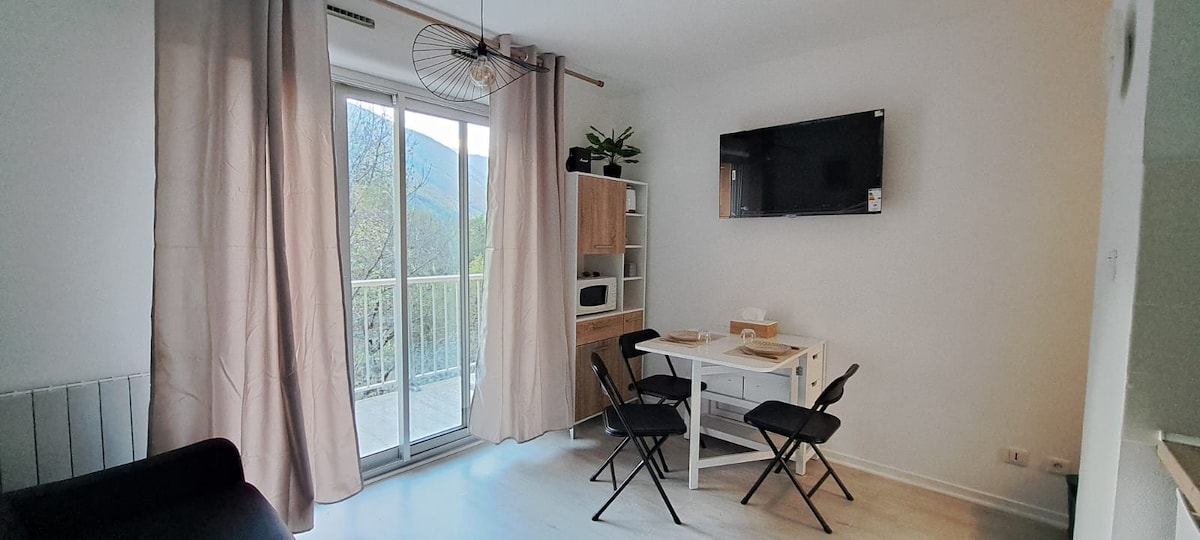 Čudovita 4-sedežna garsonjera s pogledom na gore in Ariège. Blizu železniške postaje in središča mesta Ax les Thermes. Sprehajalna pot ob reki do središča mesta Ax. Omara za smuči in brezplačno parkiranje v sklopu prenočišča. Garsonjera v 2. nadstropju z dostopom do dvigala. Dvojni kavč v dnevni sobi in dvosedežni pograd v ločeni spalnici. Kopalnica s kadjo in popolnoma opremljeno kuhinjo. Balkon ni spregledan z majhno zunanjo mizo. Posteljnina ni na voljo.