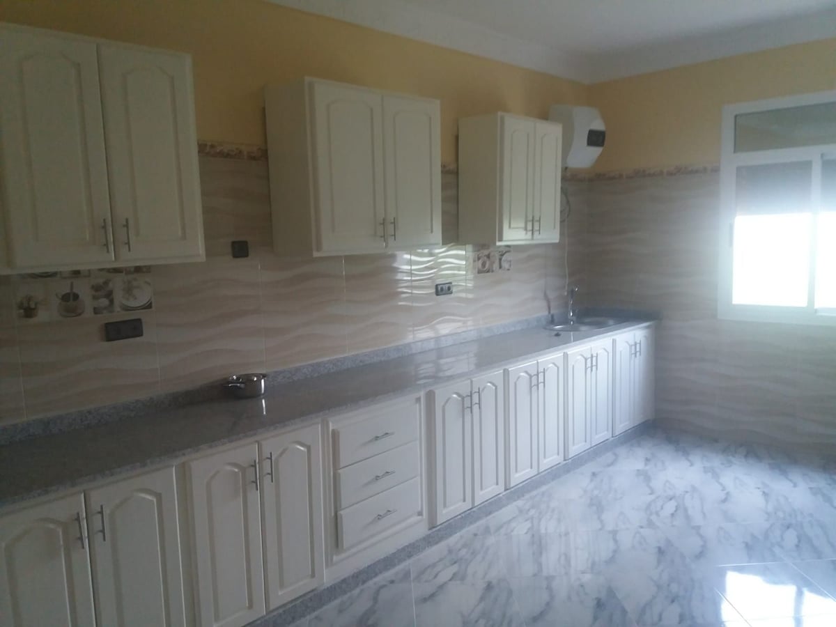 Odlično klimatizirano stanovanje v središču mesta Nador sidi Ali Od 140 m2, opremljeno s pogledom na korniche in majhno marino z dostopom do plaže Sidi Ali 200 metrov . Nahaja se v 2. nadstropju družinskega parkirišča z nočnim hišnikom. Zelo dobro se nahaja 200 m od komercialne ulice s supermarket za izposojo mesarskega avtomobila in tržnico 7 dni v tednu. Gostitelj lahko vsak dan zajtrkuje v stanovanju, zato bo Mohamed lahko odgovoril na vsa vprašanja, ki jih imate na kraju samem