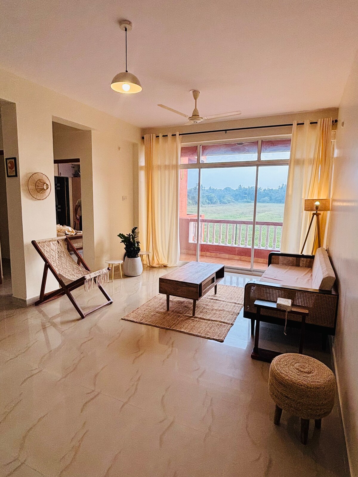 Please note - Apartment is on the ground floor Escape to the sun-drenched shores of South Goa with a stay in our charming 1-bedroom apartment. Nestled just moments away from the pristine beaches that fringe the coastline, our cozy retreat offers the perfect blend of comfort and convenience for your coastal getaway.