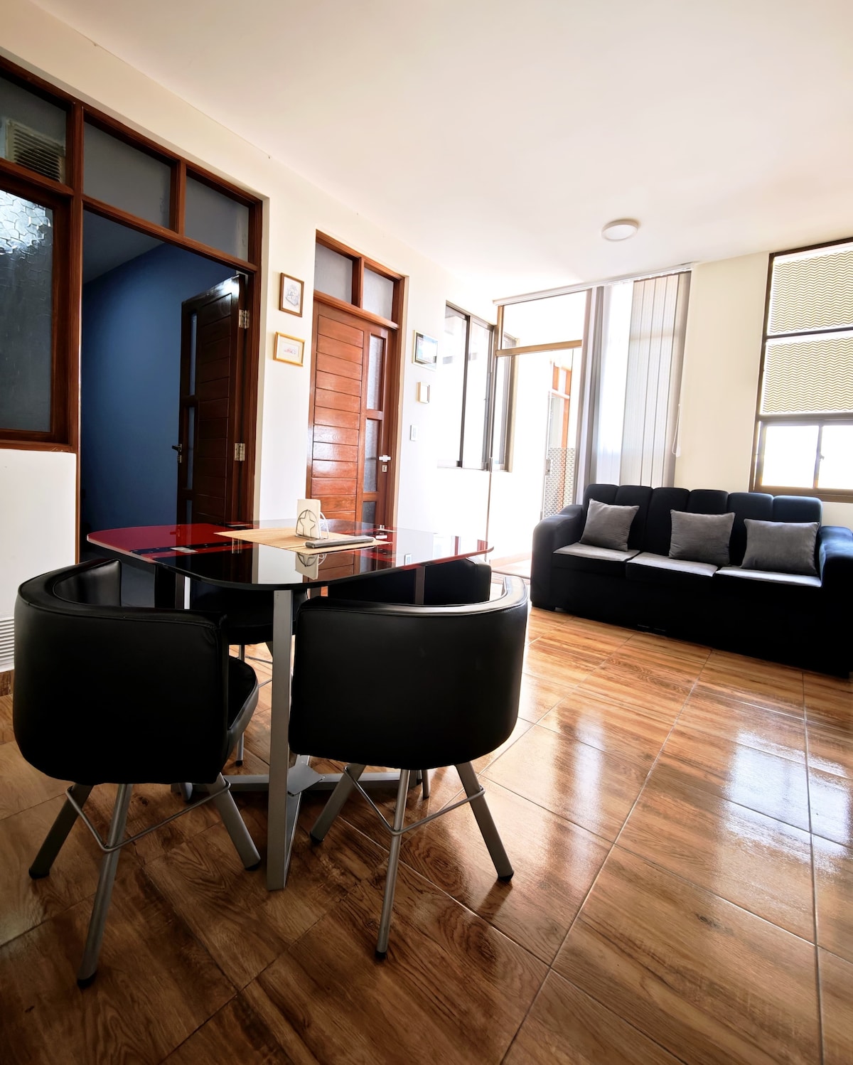 Disfruta de una estadía en este acogedor y colorido departamento a solo dos cuadras de la plaza central. Ubicado en el corazón de la ciudad, cerca de restaurantes, cafeterías, mercados y centros de abastecimiento. Ideal para quienes buscan comodidad, funcionalidad y un ambiente vibrante. Su decoración alegre y luminosa te hará sentir como en casa desde el primer momento.