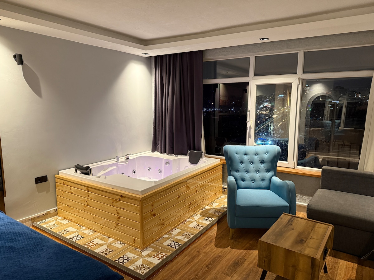 Uživajte v tem edinstvenem doživetju zasebnega jacuzzija in savne v lastnem stanovanju, ki se nahaja v središču Taksima. Imeli boste poln dostop do masažne kadi in savne samo z lastno uporabo. Lokacija se nahaja v ulici Mis, Taksim, kjer je le 30 metrov oddaljena od ulice Istiklal in je obdana s pivnicami, kavarnami in nakupovalnimi centri, v bližini postaje podzemne železnice Taksim in avtobusne postaje, ki vozijo po vsem mestu.