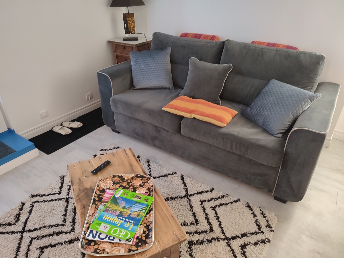 Idealno se nahaja na podeželju v Bas-Maucu v Landesu, manj kot 5 minut od Saint-Severja in 15 minut od Mont-de-Marsana. Prijeten 25m² popolnoma opremljen studio, ki meji na našo lastnino, z ločenim in zasebnim vhodom, ki ga sestavljajo: - Opremljena kuhinja (hladilnik, mikrovalovna pečica, aparat za kavo, kuhalna plošča, pripomočki) - Spalnica s posteljo 160 x 200 - kopalnica - ločeno stranišče - pametna televizija in WI-FI - Majhen zasebni zunanji prostor. Posteljnina za gospodinjstvo je na voljo.