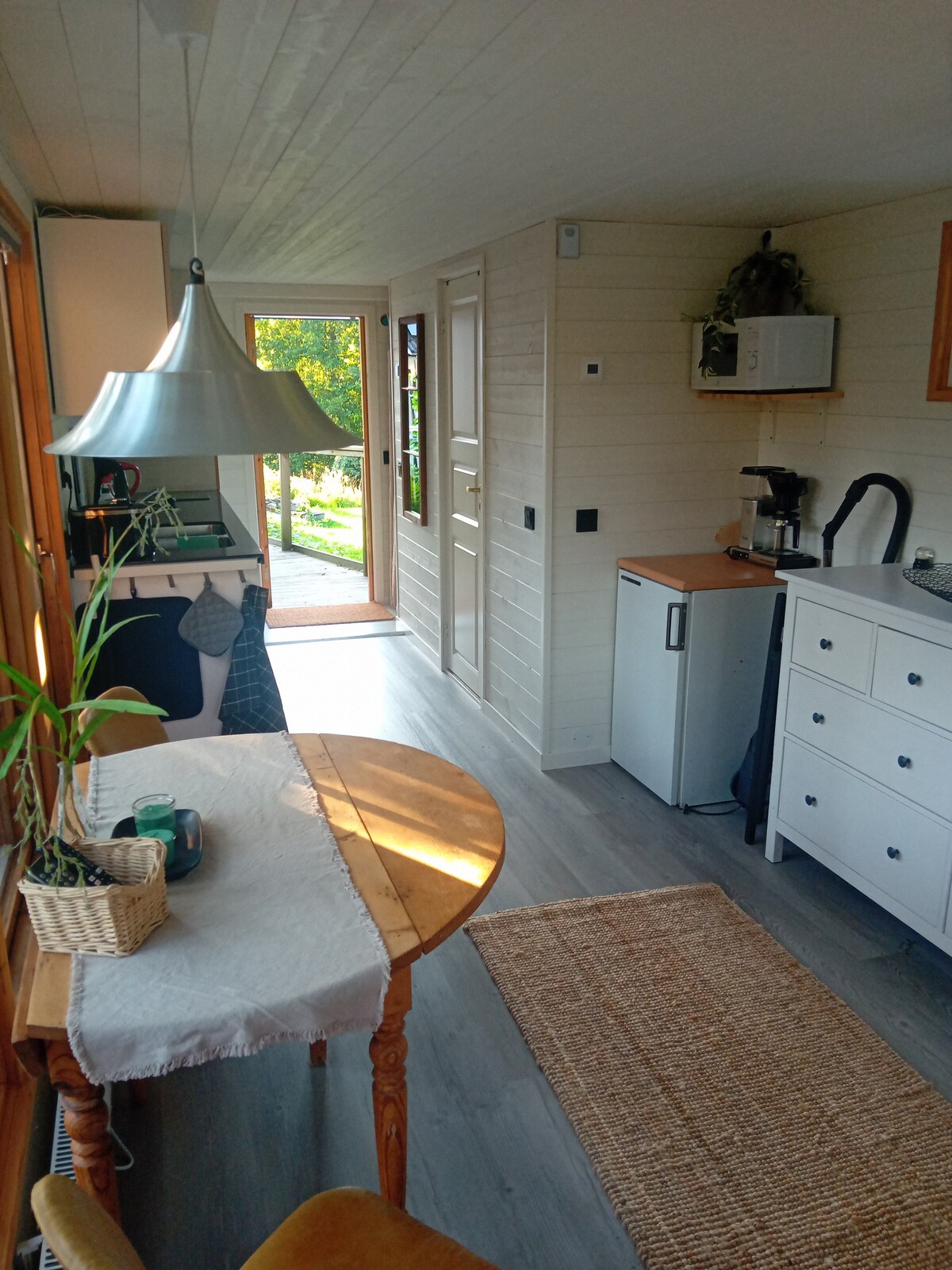 Sprostite se v tem edinstvenem in mirnem prenočišču, ki se nahaja na naslovu Stenungsön v občini Stenungsund. Ta popolnoma na novo zgrajena hiša za goste se nahaja na naši morski parceli in na voljo je dostop do velikega pomola s kopalno lestev in žarom ter čoln za čoln, ki ne vozi globlje od 2,5 m (pri izjemno nizki plimi 2 m). V hiši velikosti 32 kvadratnih metrov so: - Kuhinja z mikrovalovno pečico, hladilnikom, štedilnikom in gospodinjskimi pripomočki - spalnica z dvema posteljama velikosti 80 cm, - Dnevna soba v kombinaciji s kuhinjo z ovčjim stolom in posteljnim stolom - kopalnica s prho in WC-jem