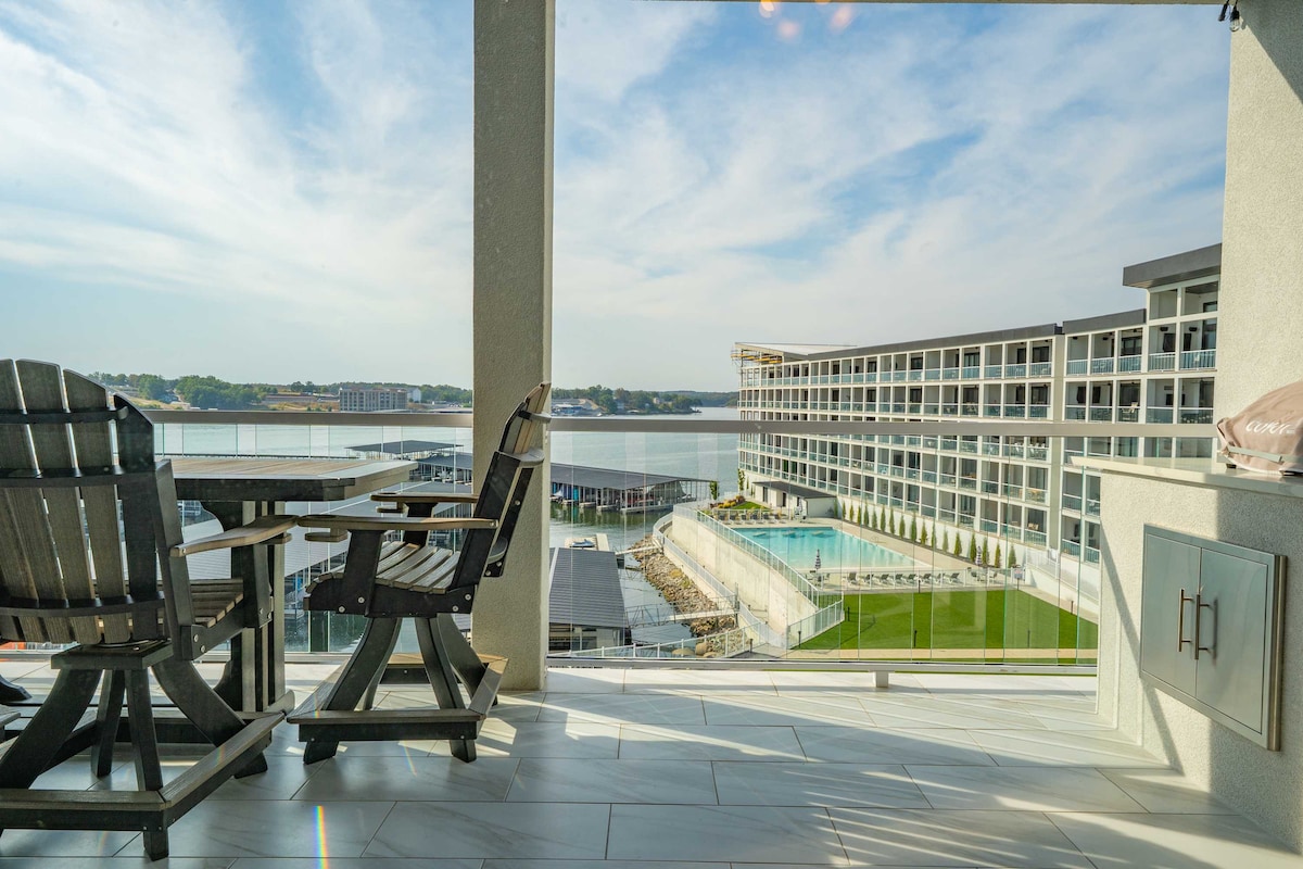 Welcome to our stunning vacation rental located at exclusive Lands End Pkwy. Our property is a luxurious and spacious 3 bedroom, 2 bathroom (sleeps 9) condo that offers breathtaking views of the lake and surroundings. The condo also has a private 2022 27ft Tritoon available to rent. The condo features an open floor plan with high ceilings allowing for ample natural light. You will find many custom features throughout. Other amenities include waterpark, lazy river, pool with waterfall.