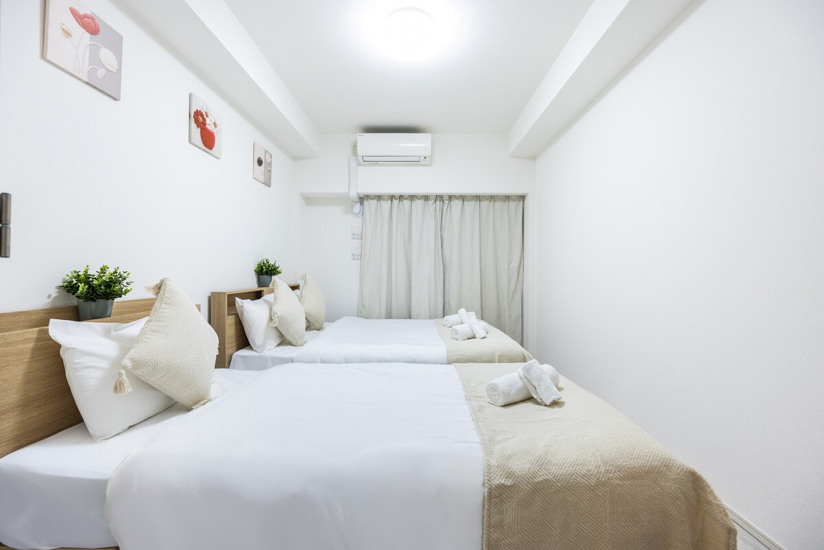 ◆Location: 1 subway stop from Namba, Dōtonbori, and Tennōji. 180m from Daikokucho subway, 2mins walk. ◆Facilities: Two double bedrooms Separate living area, kitchen, and bathroom. Fits up to 4 guests. ◆Transport: Access to Midosuji, Yotsubashi, JR Loop, and Nankai Line. Kansai Airport: 45 mins on Nankai Line, no transfers. Universal Studios: 25mins by JR. ◆Notes: 1 free towel/guest. Extras 200 yen. No cleaning during stay. Quiet after 10 pm. No smoking indoors.