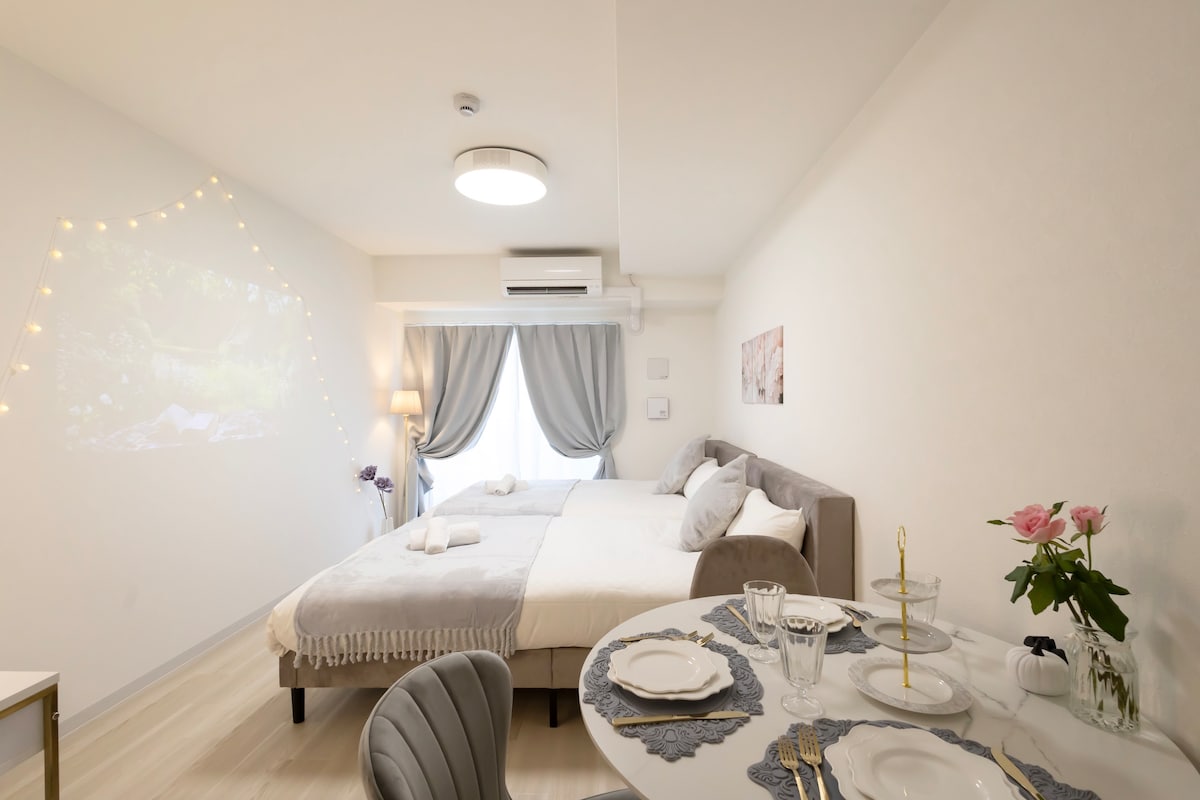 ★Pregled 1. Soba je dovolj velika za dve osebi, vendar je zasnovana tako, da sprejme eno osebo z dovolj prostora. 2. Na voljo sta monitor za delo na daljavo in pralni stroj s sušilnim strojem, ki je zasnovan za delo. 3. To je japonska sodobna soba.Obstajajo dodatki, ki jih lahko občutite in doživite kulturo. 4. Čeprav je blizu središča Osake, se nahaja v mirnem stanovanjskem predelu, zato se lahko sprostite.V bližini je tudi park, zato se lahko zjutraj sprehodite in osvežite. 5. Uporabite lahko 4 vrstice (Osaka Metro in JR Osaka Loop Line, JR Tozai Line, Hanshin Line).Od najbližje postaje do postaje v Osaki je 4 minute vožnje z vlakom.Enostaven dostop do celotne Japonske. Koristi za★ daljša bivanja Če boste bivali več kot 30 noči, vam bomo zagotovili eno brezplačno čiščenje.Brezplačno enkrat na 30 nočitev.Če boste na primer bivali 65 noči, vam bomo dvakrat zagotovili brezplačno čiščenje.