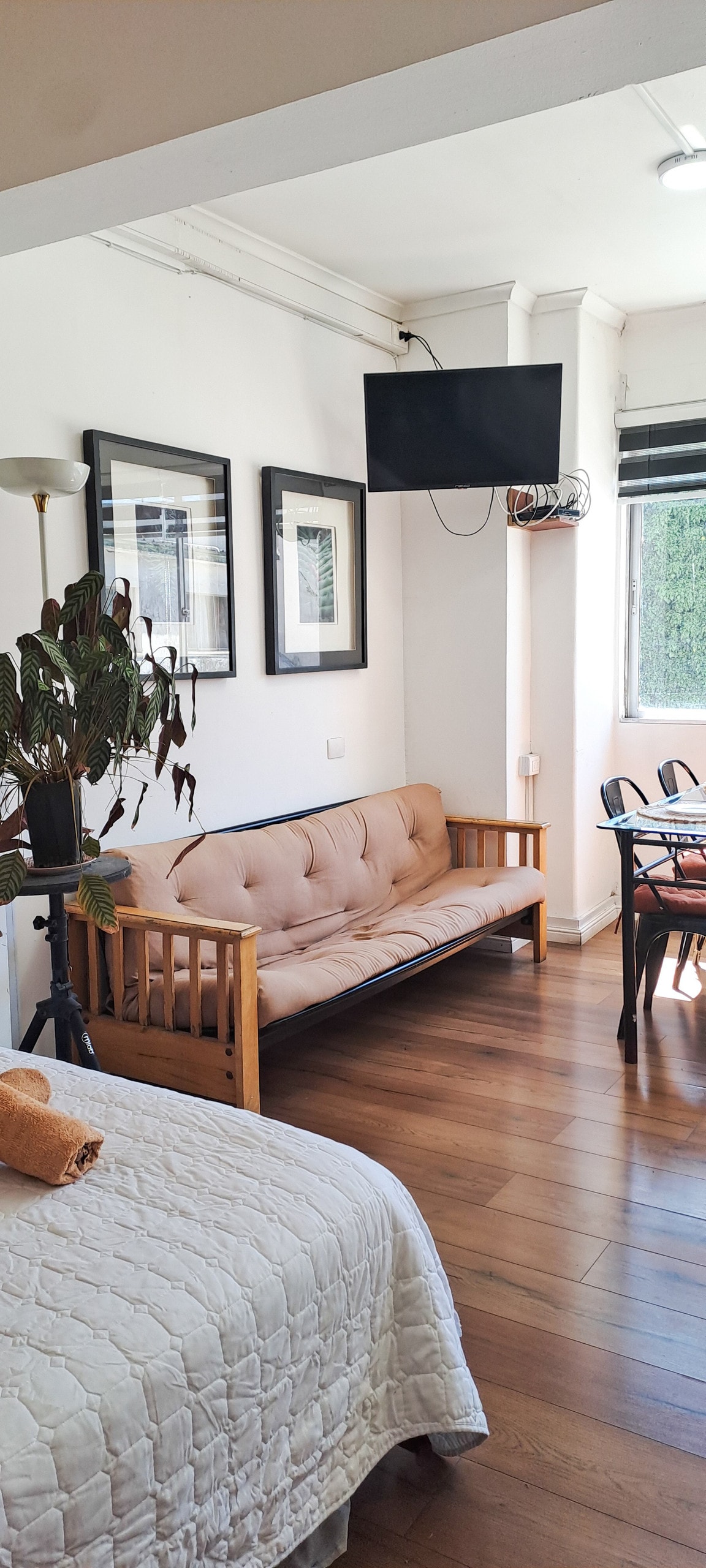 Bienvenido a un estudio/monoambiente exclusivo, cuenta con cama de 2 plazas Rosen de alta calidad y futón ideal para niños. El departamento es 100% eléctrico, tanto en calefacción como en cocina, equipado con artefactos modernos y funcionales. 📍 Ubicación privilegiada A 1 cuadra del Mall de Osorno. A 2 cuadras de la Plaza de Armas, Cercano a terminal, bares y restaurantes. Trato personalizado para una experiencia superior Lavandería de pago Estacionamiento privado