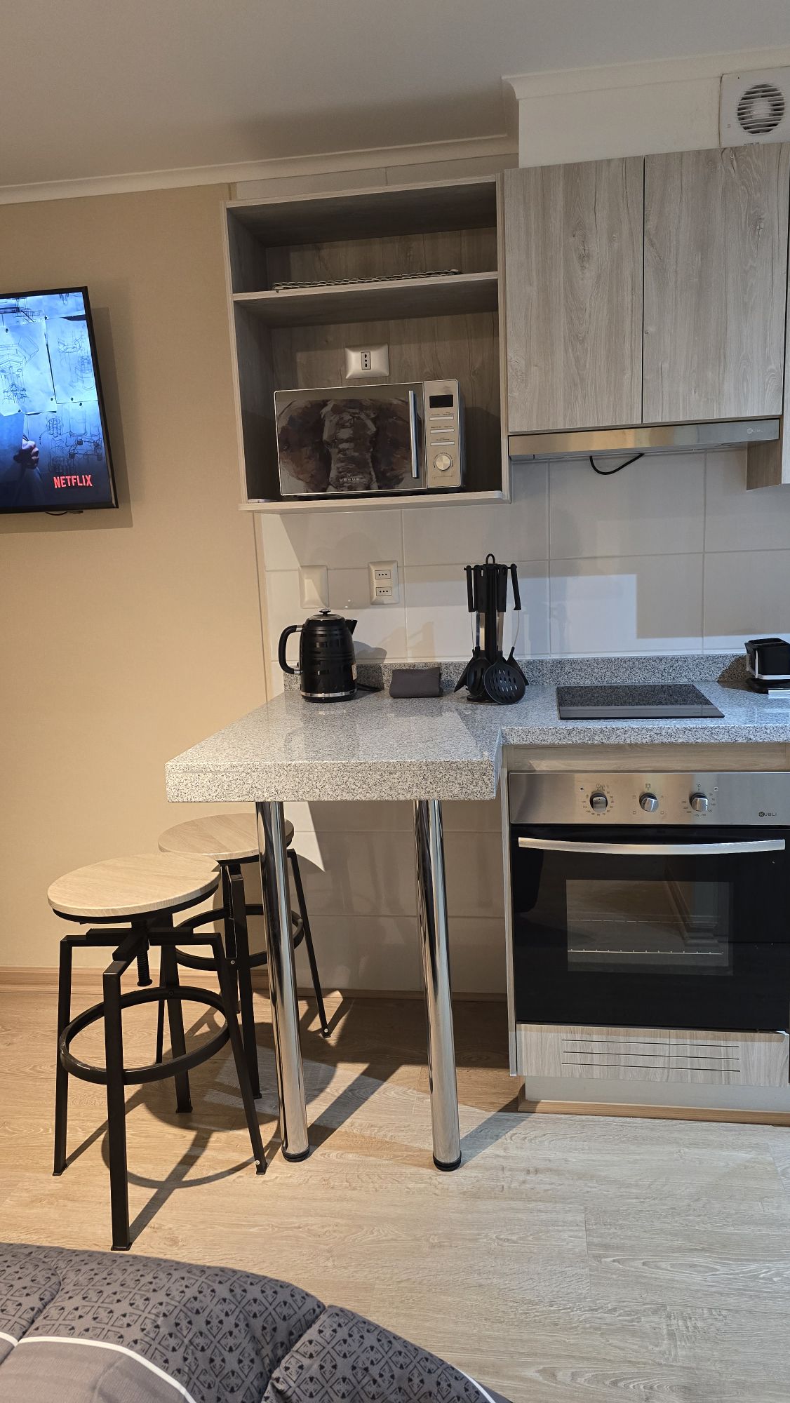 Nuestro departamento estudio te espera con los brazos abiertos en un entorno acogedor y moderno. Disfruta de: Cómoda cama matrimonial Calefacción y cocina eléctricas de última generación Gimnasio Lavandería de pago y estacionamiento privado Ubicación privilegiada: a 1 cuadra del Mall y 2 del centro Trato personalizado para hacer de tu estadía una experiencia inolvidable Opción de arriendo de quincho para eventos Relájate y siente que estás en casa, con todo lo que necesitas a tu alcance.