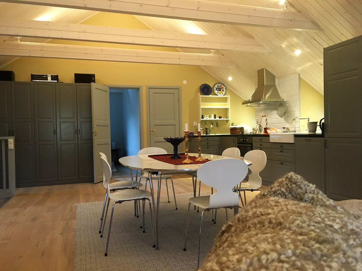 Stanovanje v središču Anebyja. Dostop do velike lepe vrtne idile s teraso in zunanjim pohištvom ob reki Svartån. Na pomolu, na enem od zunanjih prostorov, je na voljo tudi žar. Vrt s kokošnjakom in čolnom na vesla za izposojo. Zajtrk je na voljo za 125 SEK na osebo, 350 SEK/4 osebe, vključno z domačimi jajci. (slika) Apartma vključuje kuhinjo za kuhanje, jedilnico in kavč s TV. (Wifi). 2 raztegljiva kavča, alternativno 2 enojni postelji. Posteljnina je vključena. Zasebni WC, prha in pralni stroj so na voljo v spodnjem nadstropju, brisače so vključene.