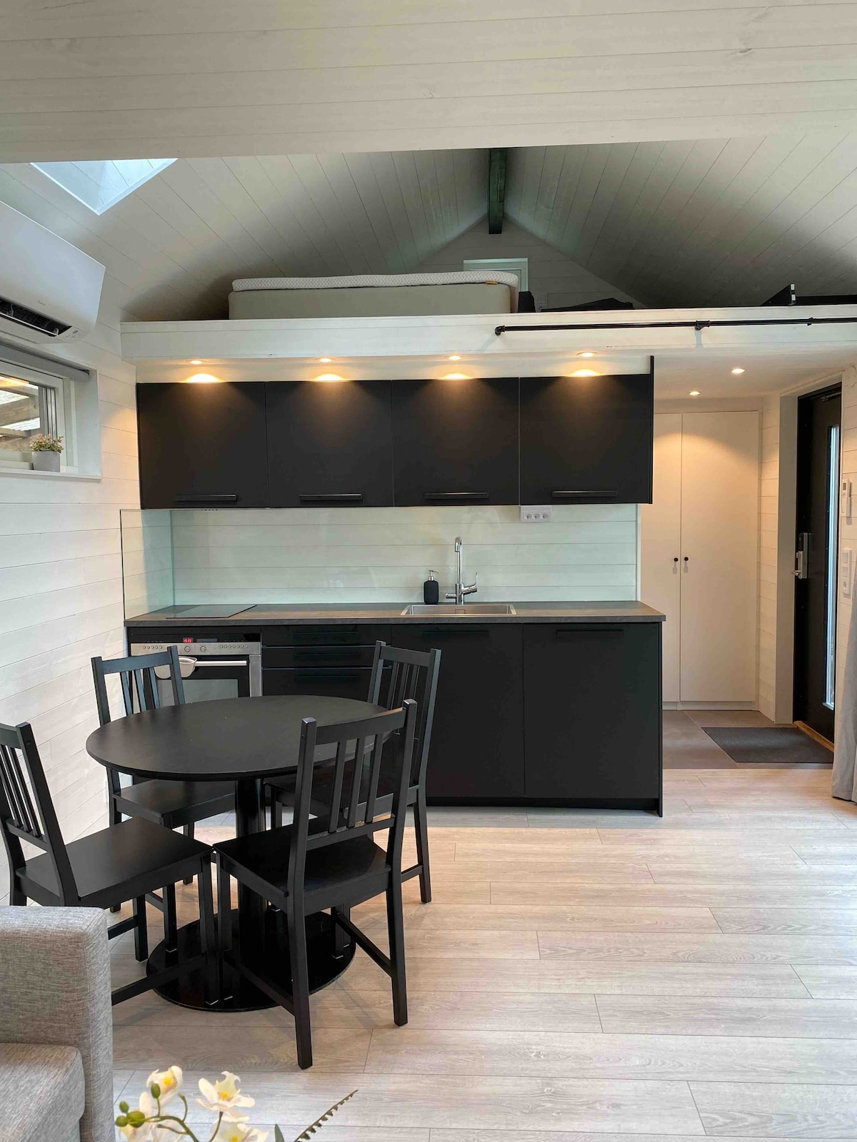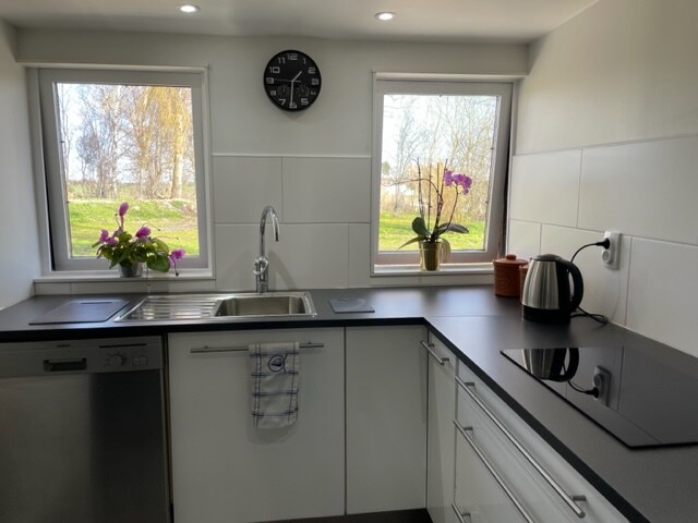 Čudovita podeželska lokacija tik izven Röstånge. Funkcionalno in sveže. Na voljo imate dve nadstropji s približno 25 kvadratnimi metri, zgrajeni v zatrepu skednja, ki je v celoti namenjen vam. Spalnica je v zgornjem nadstropju, vendar stopnišče nima oprijemala. Kuhinja ima dve kuhalni plošči, kuhinjski ventilator, mikrovalovno pečico, aparat za kavo, kuhalnik vode in hladilnik z zamrzovalnikom. Pečice ni. Kuhinja je popolnoma opremljena s kuhinjsko posodo. Raztegljiv kavč je v spodnjem nadstropju in žal ni tako udoben za spanje. OPOMBA: brisače, rjuhe in čiščenje so vključeni!