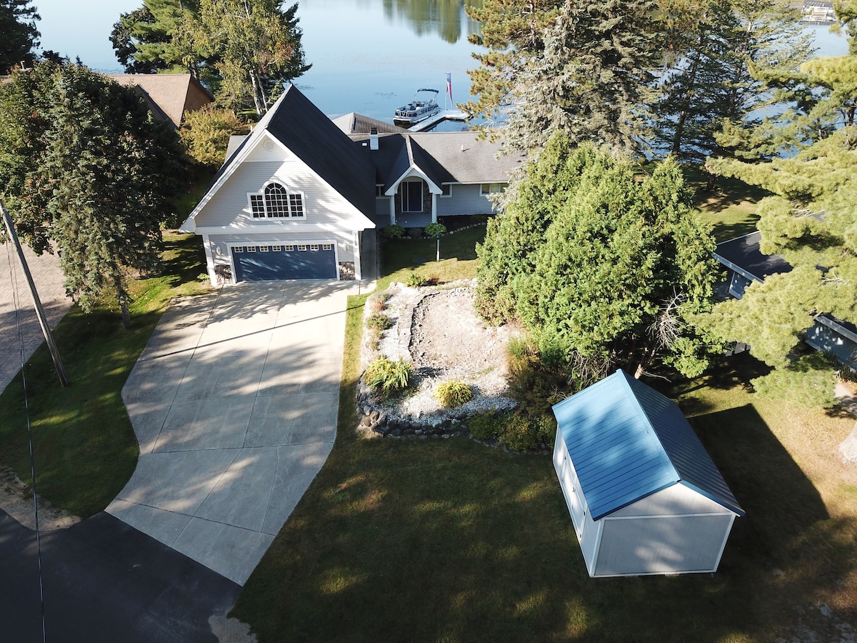 Velika družinam prijazna razkošna hiška na deželi, ki sedi tik ob obali zasebnih petih jezer z vsemi letnimi časi, osupljivim razgledom in čisto vodo. Uživajte v plavanju, ribolovu, kajaku in ribolovu na ledu na kraju samem. Minute od znamenitosti v središču mesta, golf letovišč, motornih sani, krpljanje in kratka vožnja do smučišča Boyne Mountain in znamenitosti na severu. Udobne spalnice, sodobna kuhinja, jedilnica, udobna dnevna soba, velika terasa, ognjišče, plinski žar, miza za biljard in MASAŽNA KAD s čudovitim razgledom na jezero.