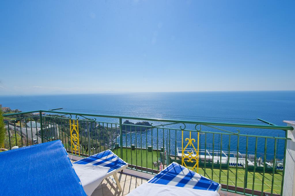 Vila je na prevladujočem položaju na morju, obkrožena z vrtovi z limonami in oranžnimi drevesi. S terase se dviga osupljiv razgled na Amalfijski zaliv od Capo Vettice do Capo d'Orsa, zgodovinskega središča in katedrale Amalfi ter nasprotno obalo od Salerna do Capo Licosa. Po zaslugi izolacije dela terase se je mogoče sončiti v popolni zasebnosti. Na 350 m je klubski bazen/restavracija dostopna le pod pogoji, ki so navedeni v razdelku Dostop za gosta