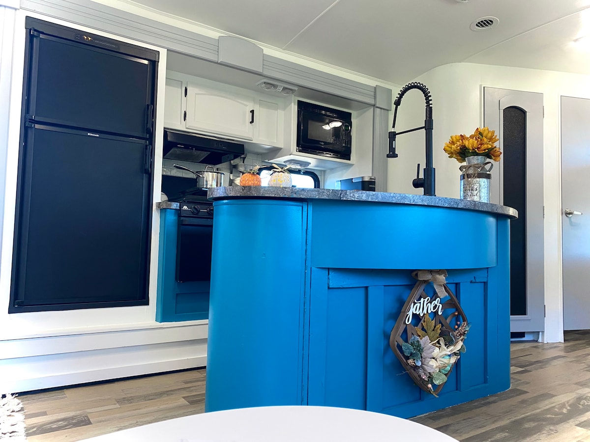 Welcome to Cooper’s Point, 10 min from downtown, feat a brand new private & adorable studio, 1 bath + cozy book nook Venture Sonic RV featuring gas range, deck w/hot tub & outdoor living spaces including grill, dining counter, & beverage fridge, all nestled under the pines & surrounded by water! Please note this RV has a murphy bed & small shower that might be difficult to use for some users. Our property is family owned&occupied with our cabins fenced off for pets & privacy. Se habla Español!