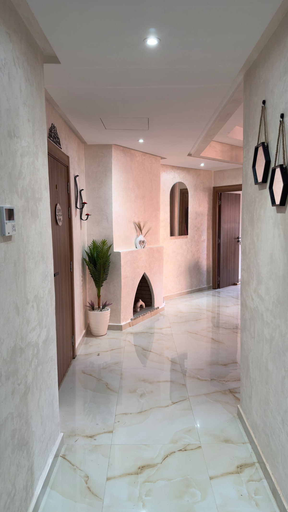 Our apartment is conveniently located in the heart of Marrakech. The train station, numerous cafes, restaurants, grocery stores, and supermarkets are all within walking distance. The airport is just a 12-minute drive away, making it ideal for travelers. • The property offers High-speed Wi-Fi, Netflix & IPTV, air conditioning, an indoor pool, a fitness center, private, covered parking, and 24/7 security & surveillance.