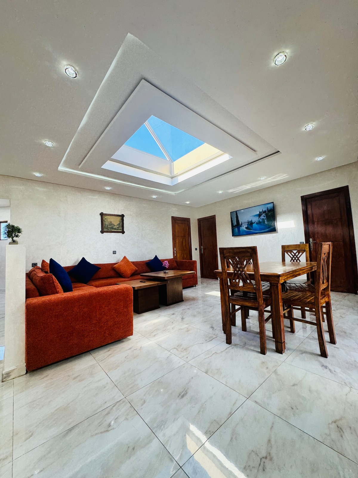 Privoščite si poslastico tako, da bivate v tem svetlem in sodobnem stanovanju! V tem stanovanju je vse udobno, umetniška dela in dekor povejo veliko o lepoti! Vi in vaša družina ali prijatelji lahko uživate drug v drugem, ne da bi se počutili utesnjene! če dihate svež zrak, medtem ko podnevi uživate v skodelici kave/čaja, medtem ko uživate v mirnem razgledu, ki ga ponuja to stanovanje. to je vaš dom, ko boste raziskali Agadir, ko boste raziskali Agadir.
