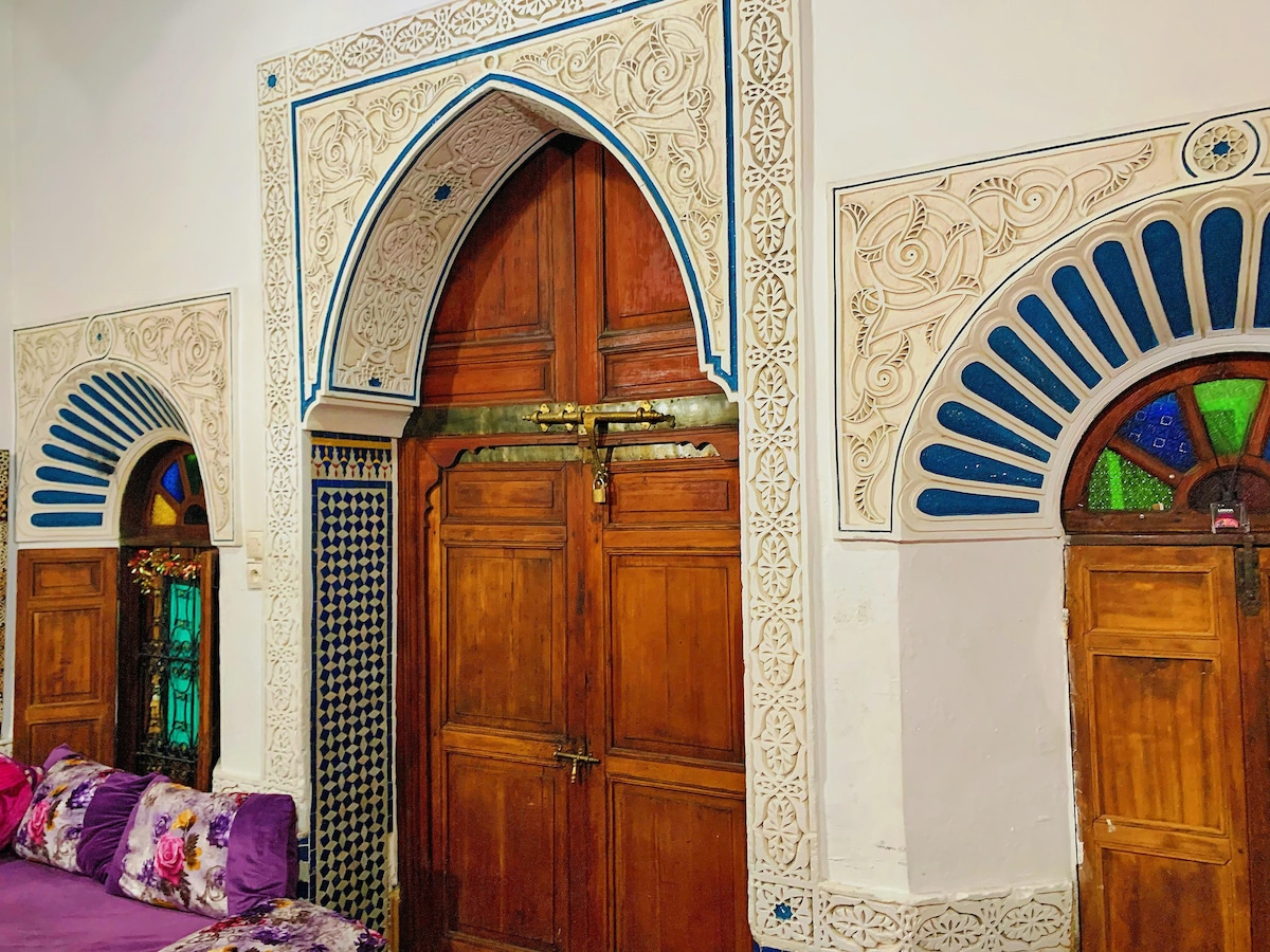 Udobno enosobno stanovanje v 2. nadstropju tradicionalne hiše v starem mestnem jedru. Opremljeno s klimatsko napravo/ogrevanjem, toplo vodo, televizijo in hitrim optičnim Wi-Fi-jem (100 Mb/s). Le 4 minute hoje do Bab Boujloud, Talaa Sghira, Talaa Kbira, taksijev, majhnih trgovin in glavnih znamenitosti. Po raziskovanju mesta se sprostite na terasi. Glavni vhod v stavbo si delite z gosti v prvem nadstropju, vendar ima stanovanje svoja zasebna vrata. Ni idealno, če ste občutljivi na hrup.