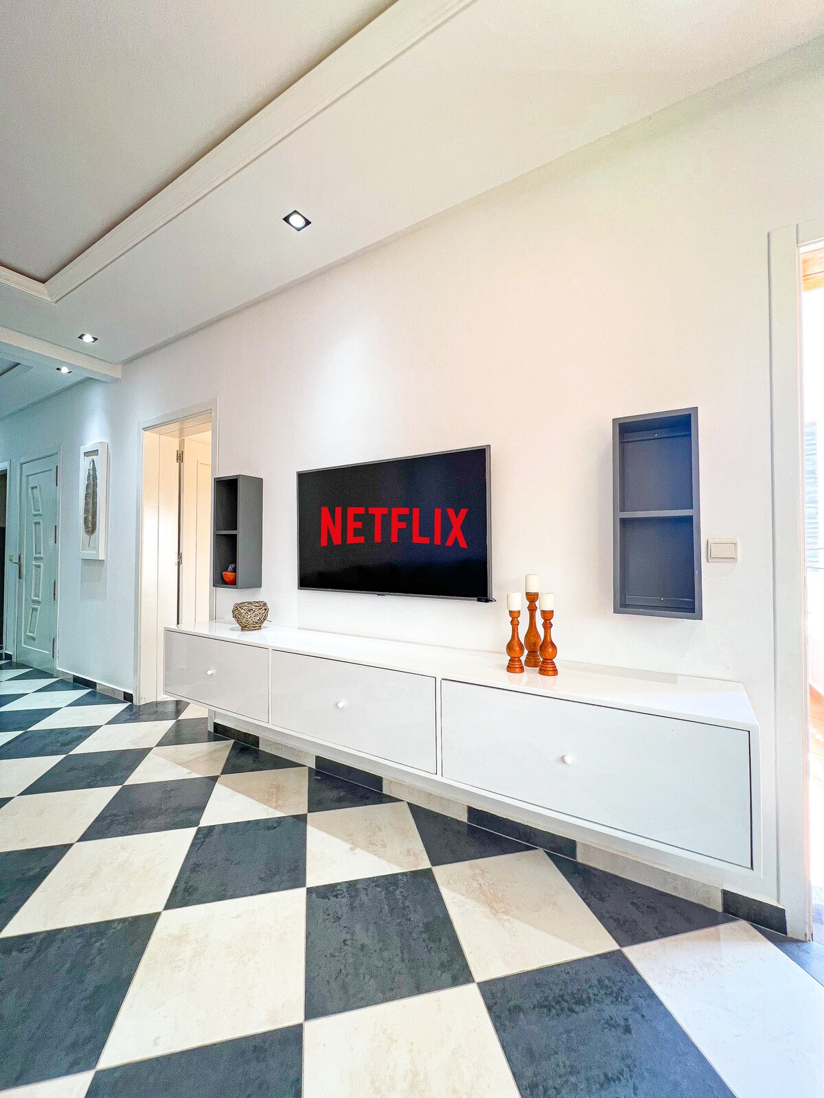 Everything you want to explore is right outside the door of this place. 7 minutes away from the sea , It is characterised by a beautiful view overlooking nature ( The fourth floor )