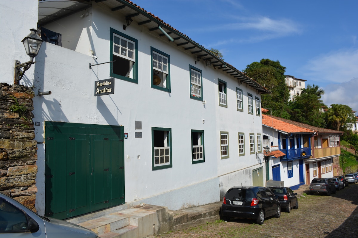 Mesto ima najlepši razgled na Ouro Preto in se nahaja v osrčju mesta, poleg Muzeja nezavesti in cerkve Nossa Senhora do Carmo, od koder lahko opazujete sončni vzhod in zahod. V prvem nadstropju je tudi restavracija, kjer strežemo zajtrk. V restavraciji strežejo kosilo in večerjo, ki nista vključeni v ceno rezervacije. Stanovanje je majhno, vendar blizu vsega, kar je lahko odlična vrednost.