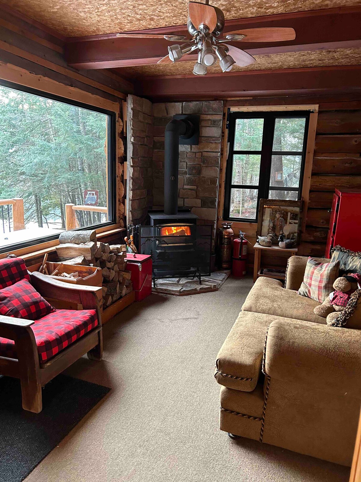 Refuge de la Rouge l Rivière, foyer, SKI Tremblant