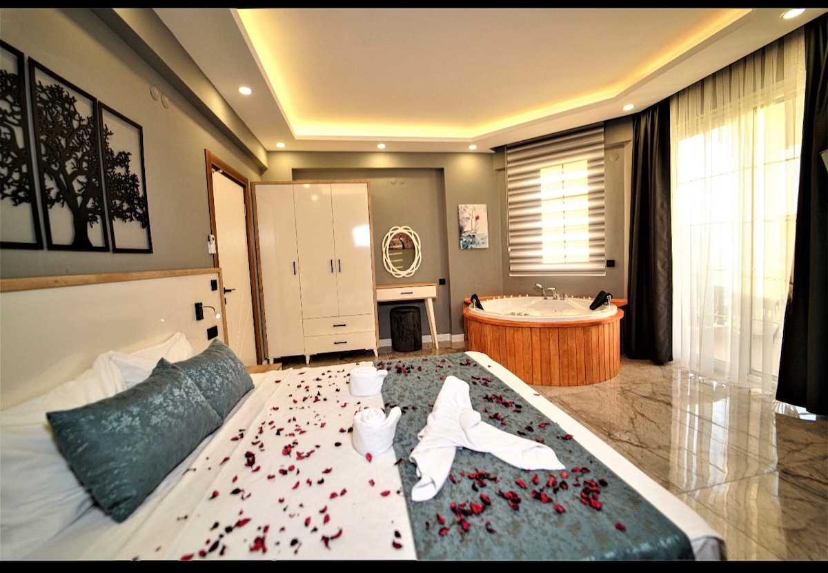 Villa Babadağ was designed by me and a famous architect in 2020. the villa leaves nothing to be desired. A tropical garden, five whirlpools, a swimming pool with a waterfall, a jacuzzi with a children's pool, a large driveway, and large rooms meet our guests' every need. We have created a garden on the balcony and a hot tub with sea and city views. every minute you spend in the villa is an absolute pleasure