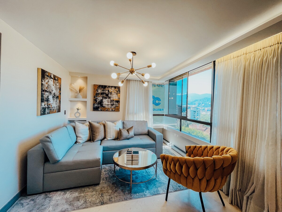 This rental has NO Airbnb service charges, it is borne by the host! -Apartment in the best location in El Poblado, across from Oviedo shopping mall and 100 meters from Medellin's golden mile. -Excellent internet with over 300 megabytes exclusively for you. -12th floor with large windows offering a spectacular view of Medellín. -Building features 24/7 security, two elevators, Turkish bath, sauna, and covered parking. -Bedroom equipped with air conditioning. We look forward to hosting you soon!